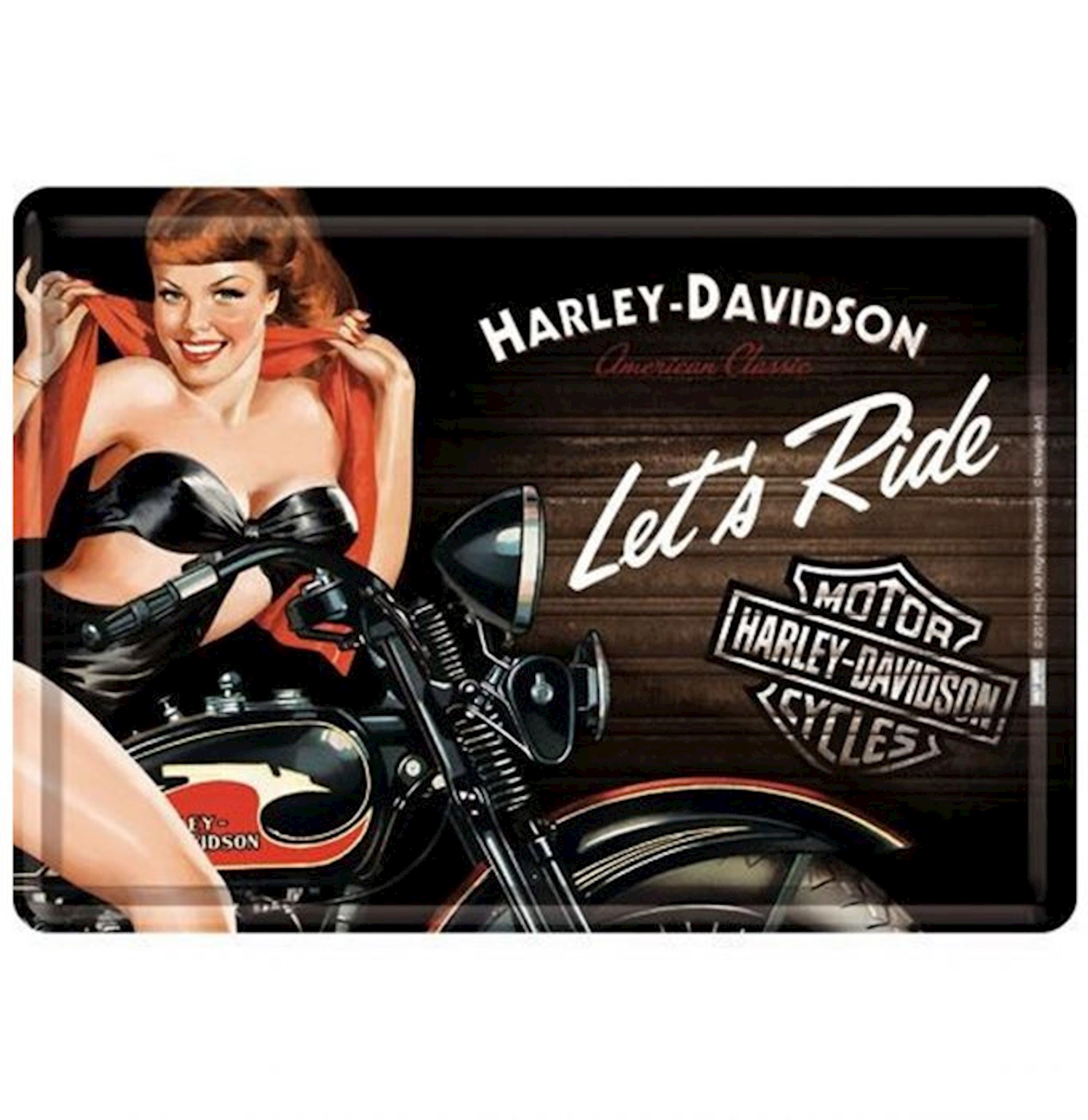 Harley-Davidson® Metal Postcard Biker Babe Red
