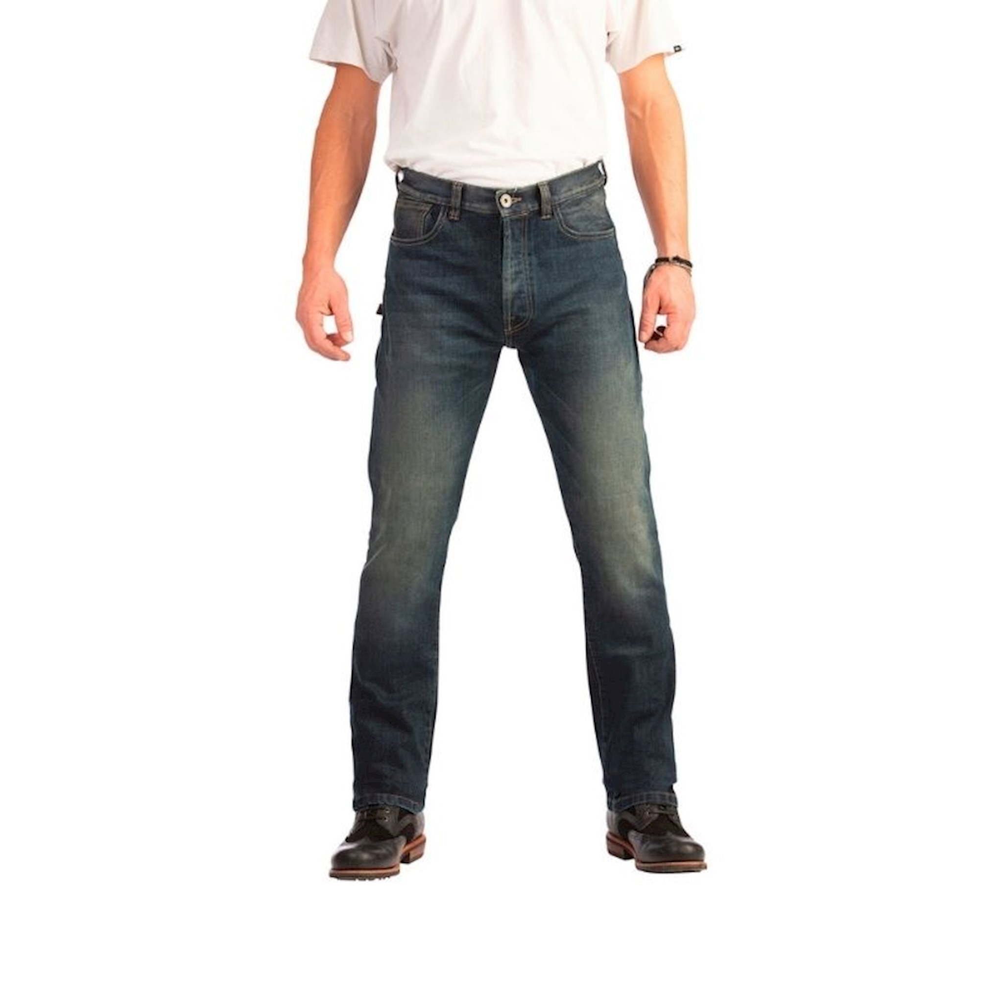 - Highly abrasion resistant single layer motorcycle jeans with five-pocket style - Slim fit with tapered leg - Finest 14 oz Denim with high abrasion resistant UHMWPE fibres - Vintage wash - Protector pockets on knee and hips for maximum safety - Without rivets which could scratch the bike - Easy care
