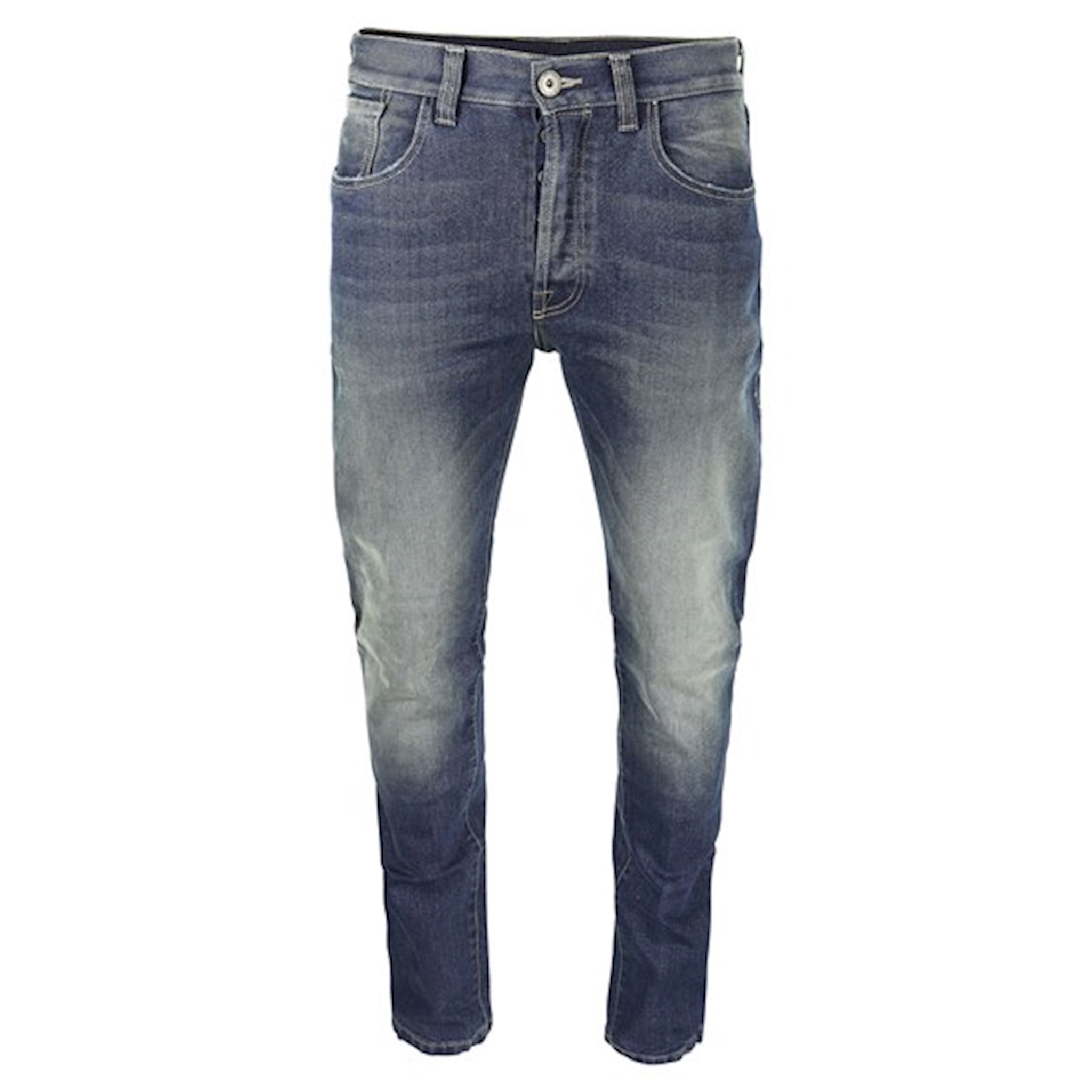 - Highly abrasion resistant single layer motorcycle jeans with five-pocket style - Slim fit with tapered leg - Finest 14 oz Denim with high abrasion resistant UHMWPE fibres - Vintage wash - Protector pockets on knee and hips for maximum safety - Without rivets which could scratch the bike - Easy care