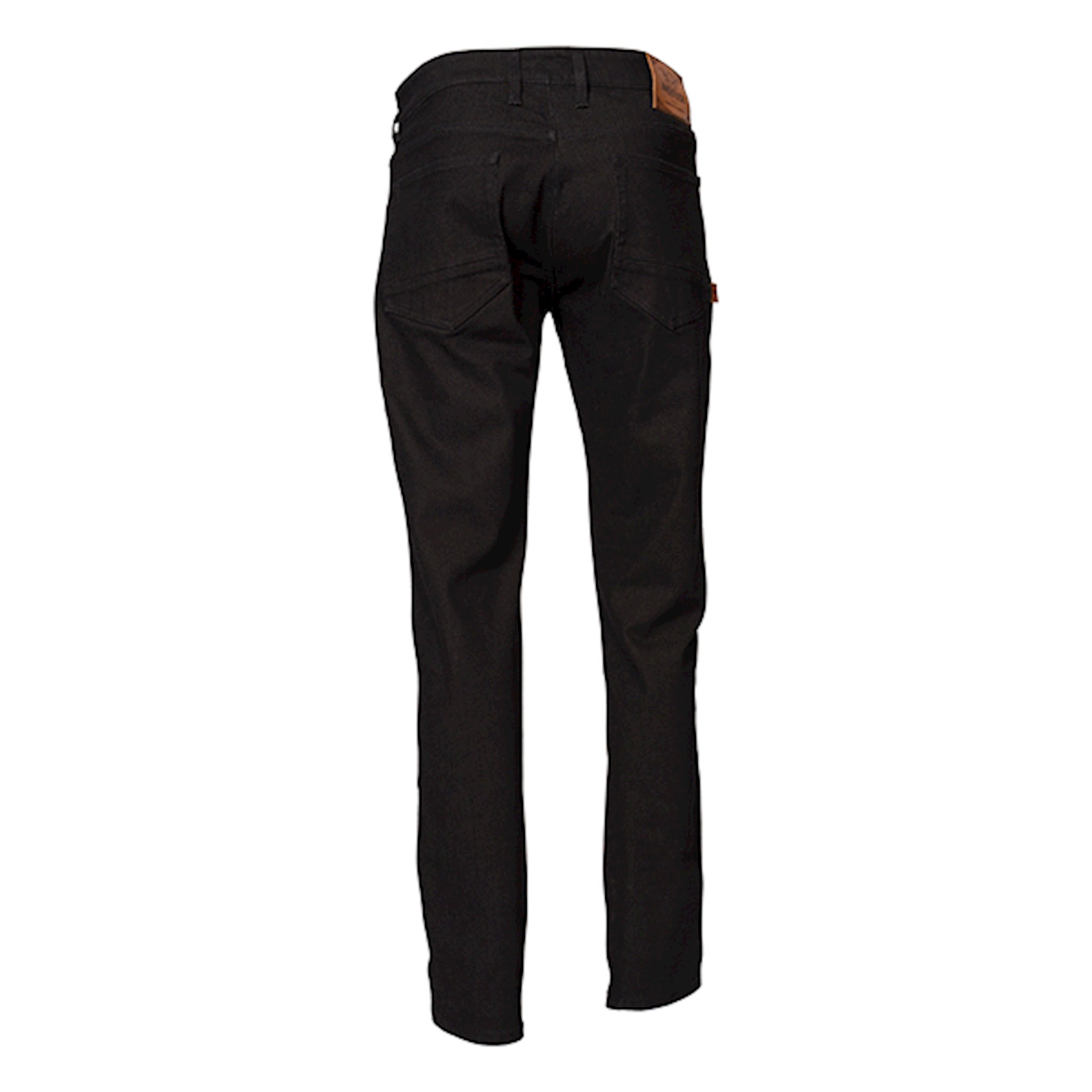 Construction: Highly abrasion resistant, single layer motorcycle jeans in five pocket style with zipper. · Fit: Tapered slim fit. · CE Level: AA approved. · Material: Finest black black denim with high abrasion resistant fibres (59 % cotton, 32 % polyamide, 8 % elastomultiester, 1 % elastane) · 12 oz. · Protector pockets: Integrated at hips and knees (height adjustable). · Protectors: Including latest super flat removable D3O® Ghost knee and hip protectors. · Details: No rivets that scratch the motorcycle · ROKKER leather label on waistband and back pockets. · Care instruction: Washable at 30°. · Packaging: Delivered in an exclusive canvas bag with T-shirt and D3O® Ghost knee and hip protectors.