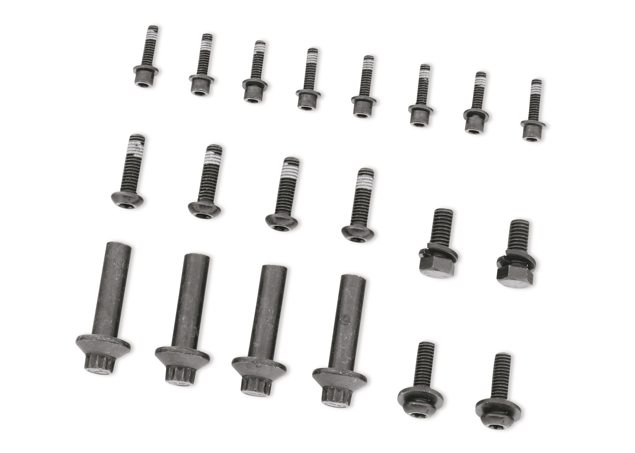 Durable and easy-to-install, this gloss-black engine hardware adds a custom touch to the blacked-out look of your motorcycle. Kits include the hardware required to replace all of the visible zinc-plated fasteners on the vehicle's engine, primary, rocker boxes, derby or cam covers. Lock patch included where required.