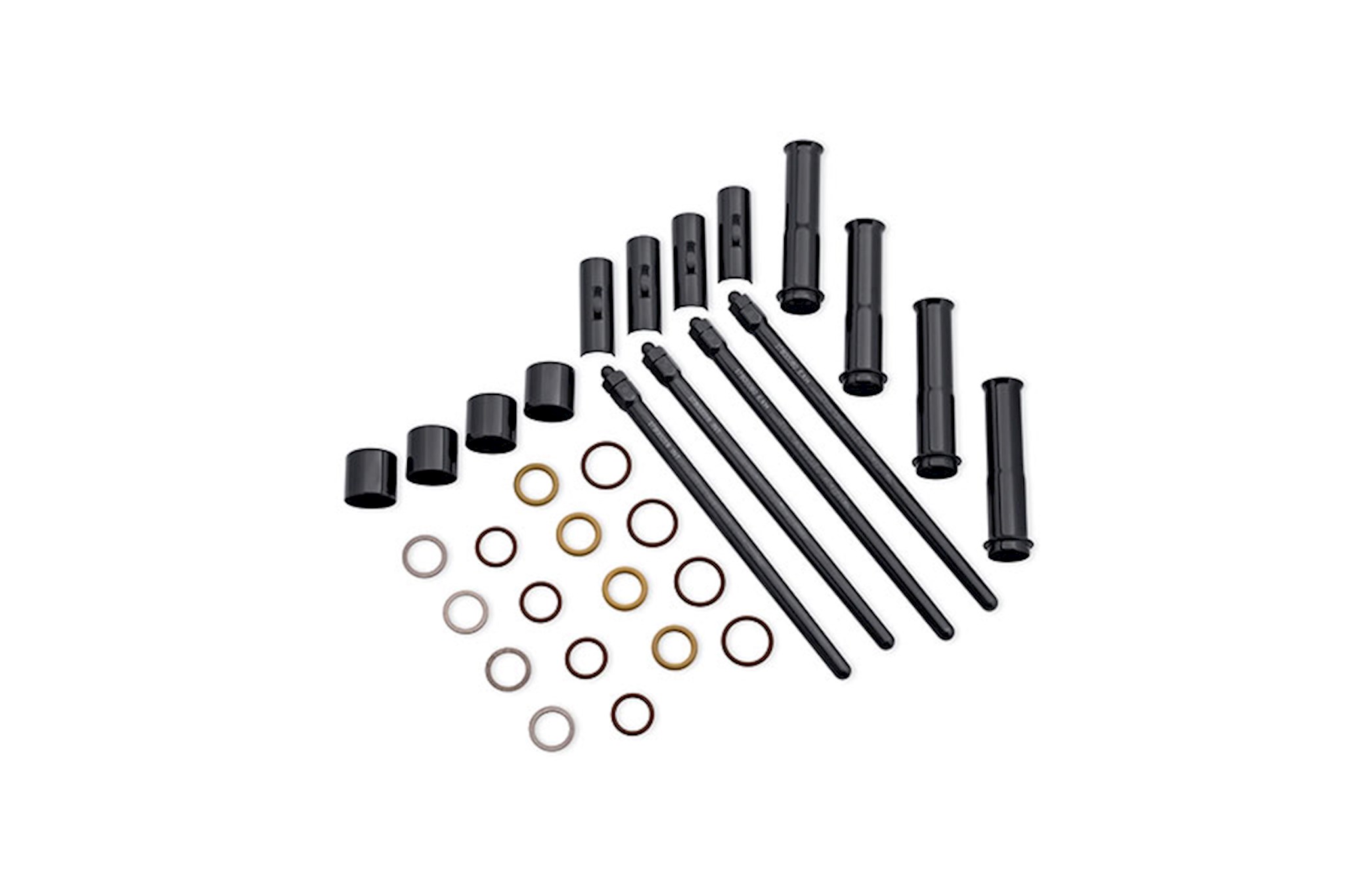 These premium pushrods are tapered for enhanced clearance at the cylinder head, allowing the use of higher lift cams. The one-piece chrome moly pushrod adds rigidity and durability and the threaded adjustment feature provides easy cam installation without removing the cylinder heads or rocker boxes. To simplify adjustment, the pushrod features six flats, with one flat marked with a large dot for tracking the adjustment. The threaded rod features 4 flats to reduce wrench swing. Kit includes 4 pushrods and required pushrod tube covers and o-rings.