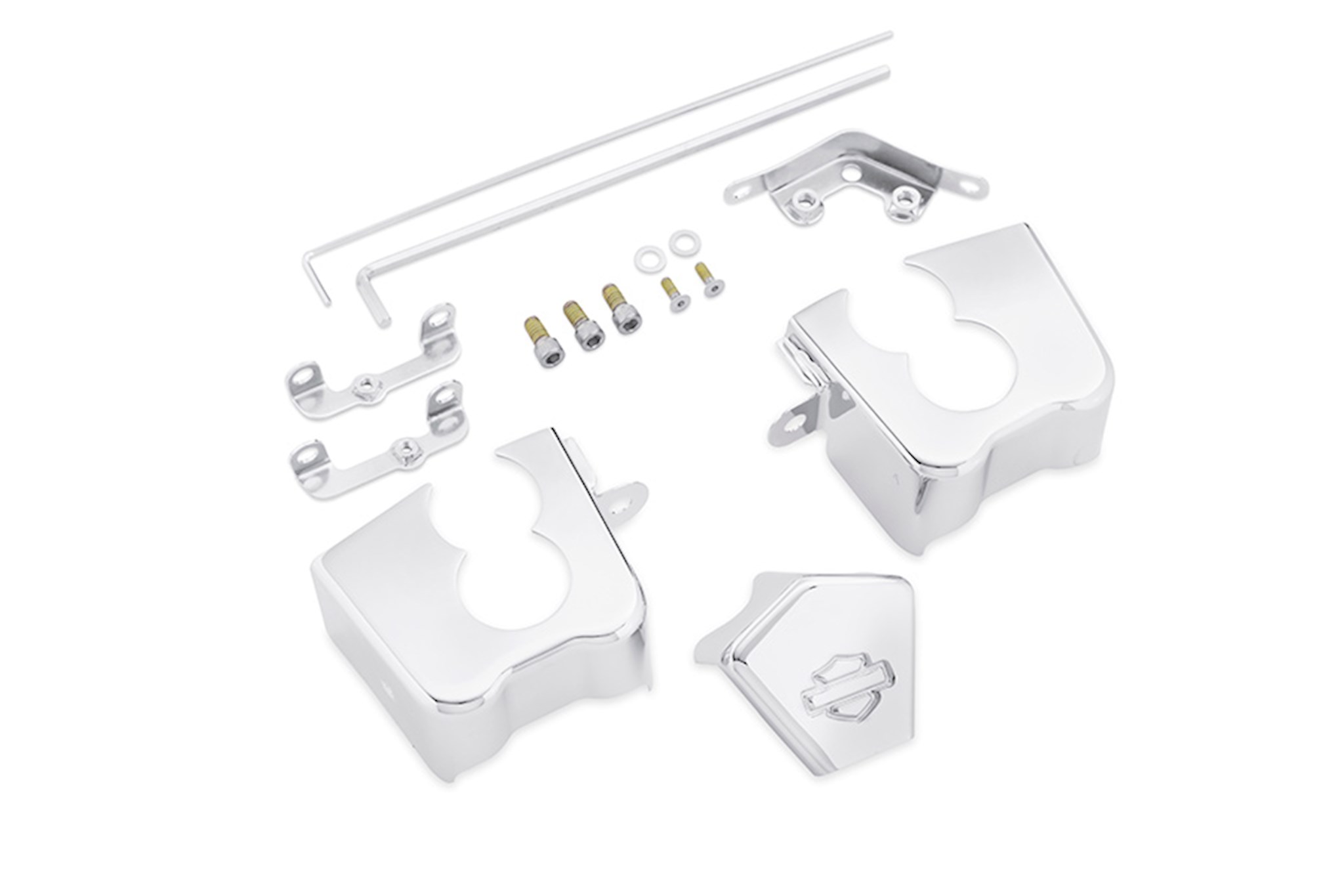 Unlike other lifter block covers on the market, this chrome-plated cover features a design that helps hide the mounting hardware. With an embossed Bar & Shield logo, this kit cleans up the lifter block area and extends chrome from the gearcase cover to the lifter tubes. Includes all mounting hardware and installation tools.