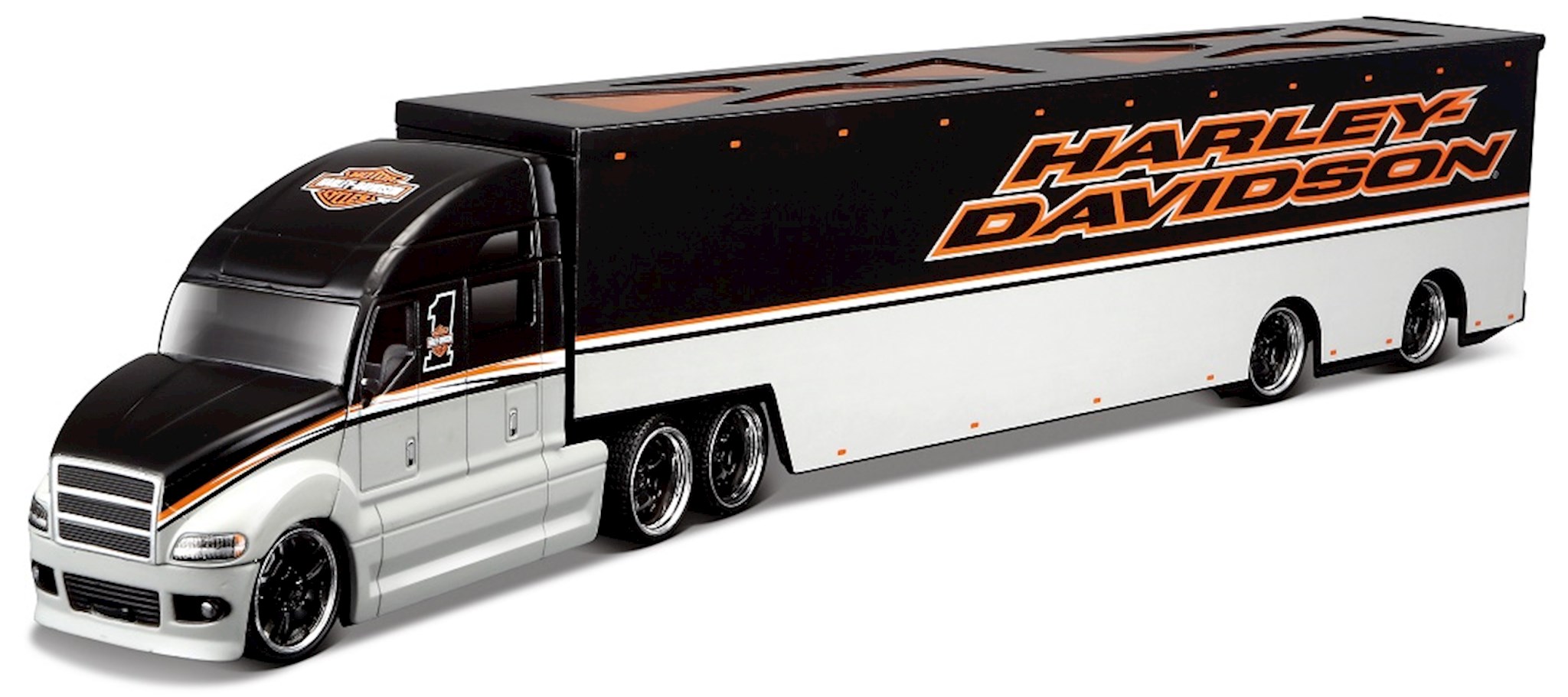 Harley-Davidson® Custom Hauler Trailer Maisto 1:64. True-to-scale detail. Rubber Tires & Detailed exterior. Made of die cast with some plastic parts. 3 Years and above. No Battery Required.