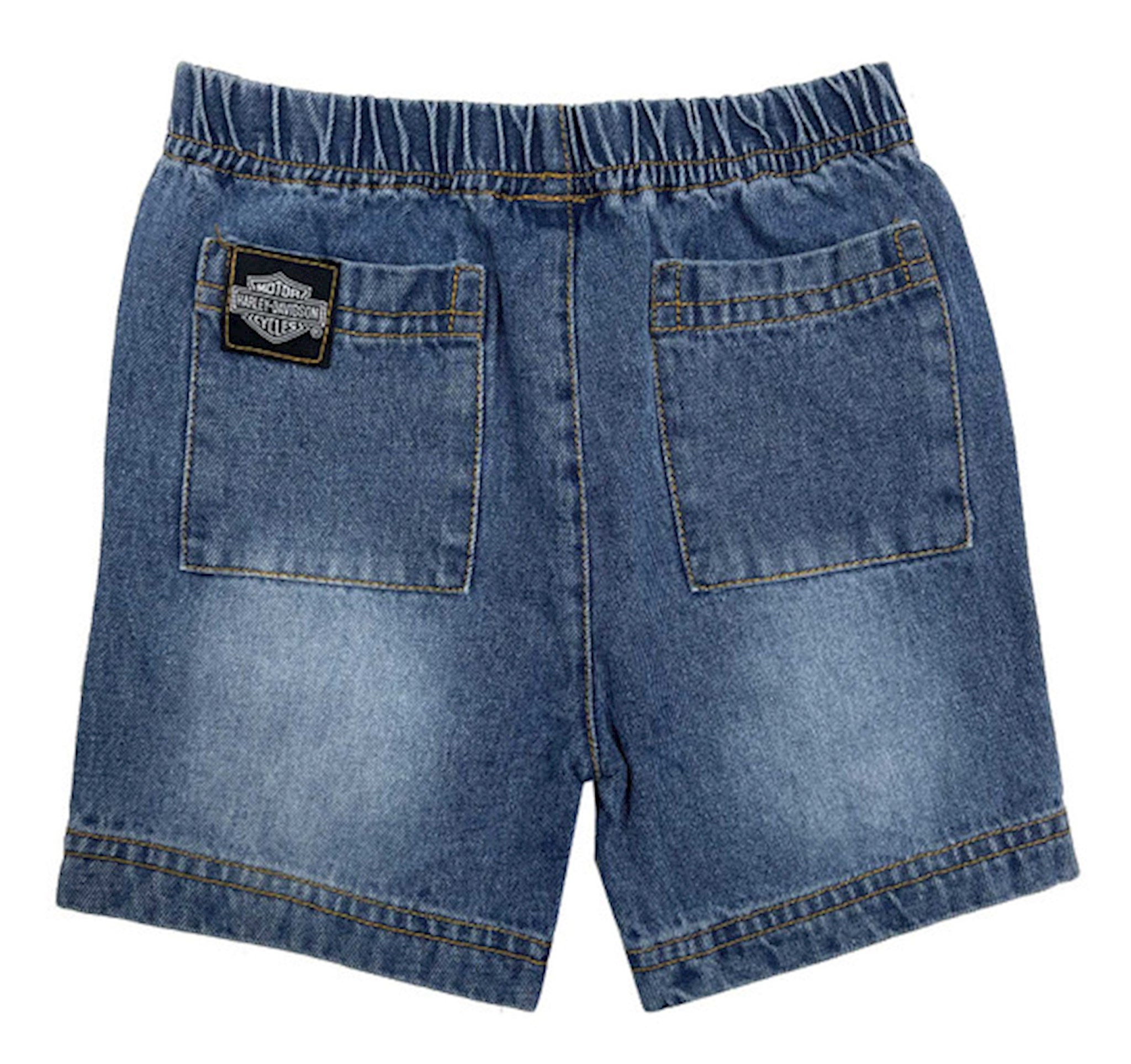 Harley-Davidson® kids 2-Piece Toddler Knit Tee & Denim Short Set. Short sleeve graphic tee is made from 60% cotton and 40% polyester. Features an awesome motorcycle printed graphic screen printed on front. Shorts are made from 100% cotton. Denim shorts feature stretchy waistband and back pockets. A perfect summer outfit!
