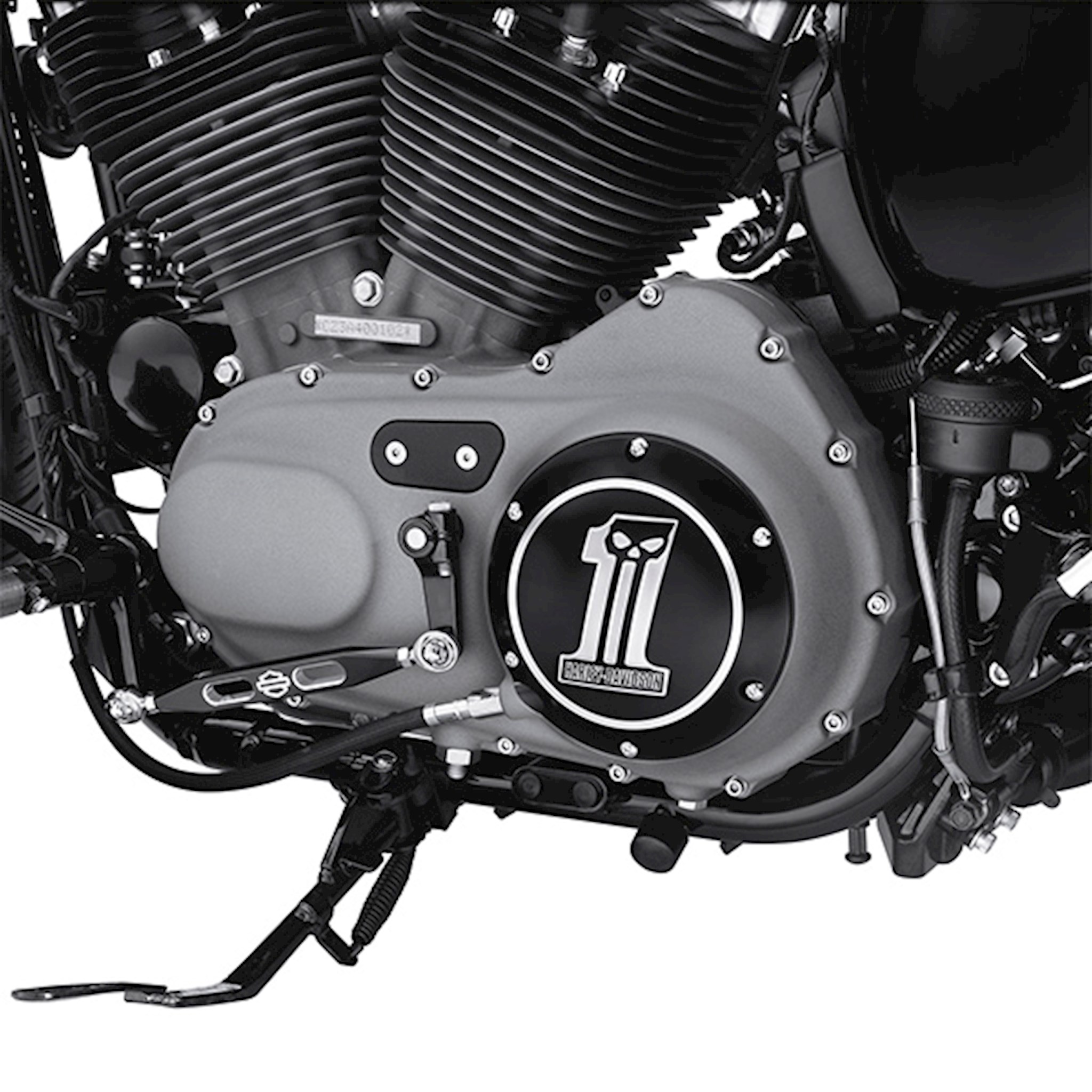 The famous Harley-Davidson #1 logo with a sinister twist. Machined from billet aluminum, these covers feature domed surfaces that are polished and black anodized to a rich satin sheen, and then re-machined to expose the raw aluminum. The resulting high-contrast design complements both polished and painted engine finishes.