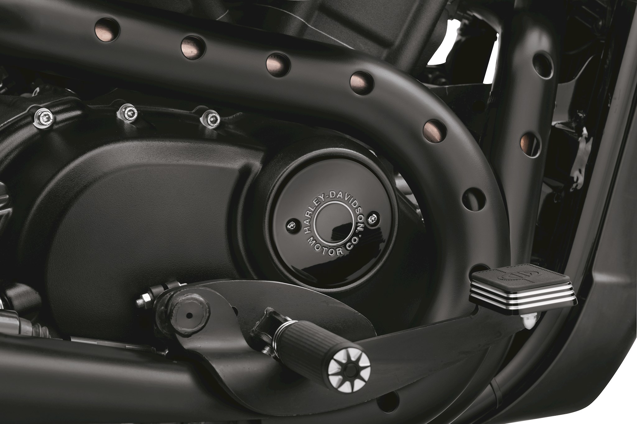 An aggressive twist on a classic style. The Harley-Davidson Motor Co. Collection features a rich gloss black surface, trimmed with deep-cut silver-filled lettering that surrounds a central groove. The clean design and the luxurious finish are the perfect match for blacked-out engine cases.
