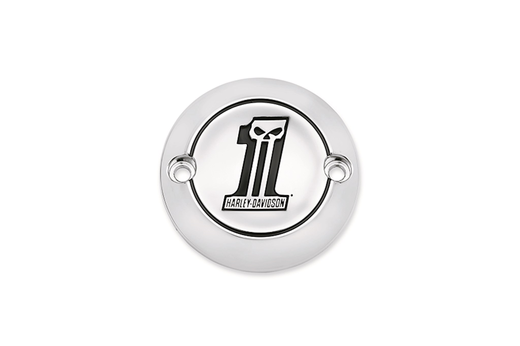 The sinister Harley-Davidson #1 Skull logo dresses for a night on the town. This complete die-cast aluminum collection has been polished and chrome-plated to a brilliant shine, and then finished with a contrasting black-filled Dark Customâ„¢ Skull logo. The black-filled race track stripe and recessed hardware pockets provide added depth and dimension. Includes chrome-plated mounting hardware.