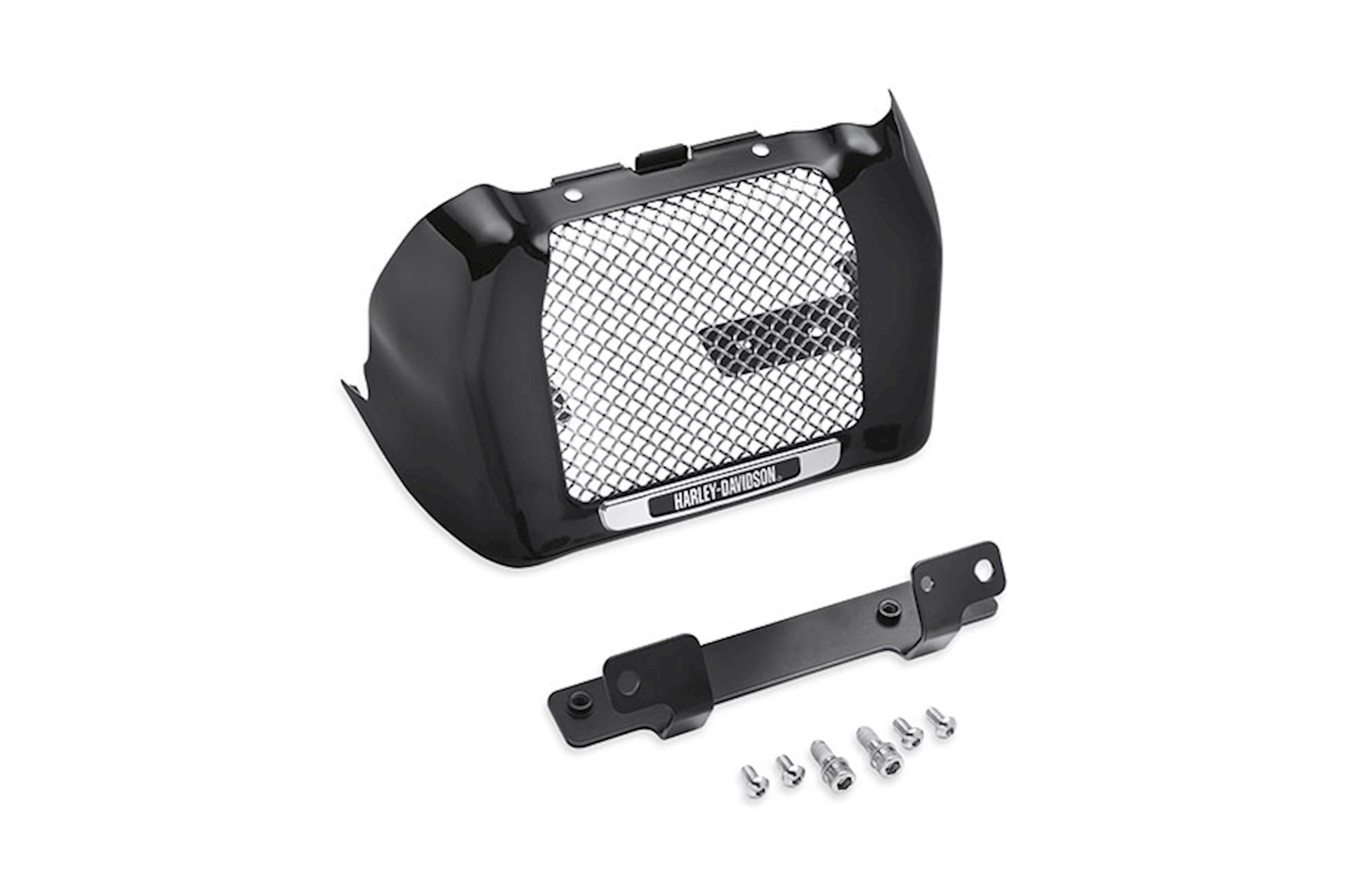 Dress the Touring oil cooler in style. This Oil Cooler Cover is designed to hug the contours of the cooler body and does not interfere with the engine guard or voltage regulator. The forward-facing mesh screen adds a custom touch, and protects the oil cooler fins from road debris without disturbing the airflow across the surface. Available in your choice of chrome or gloss black finish, the easy-to-install cover kit includes all required mounting hardware. Fits '17-later FLHR, FLHRC, FLHX, FLHXS, FLTRX, FLTRXS and FLRT models. Does not fit models equipped with fairing lowers. Does not fit with Fan-Assisted Oil Cooler P/N 62700204.