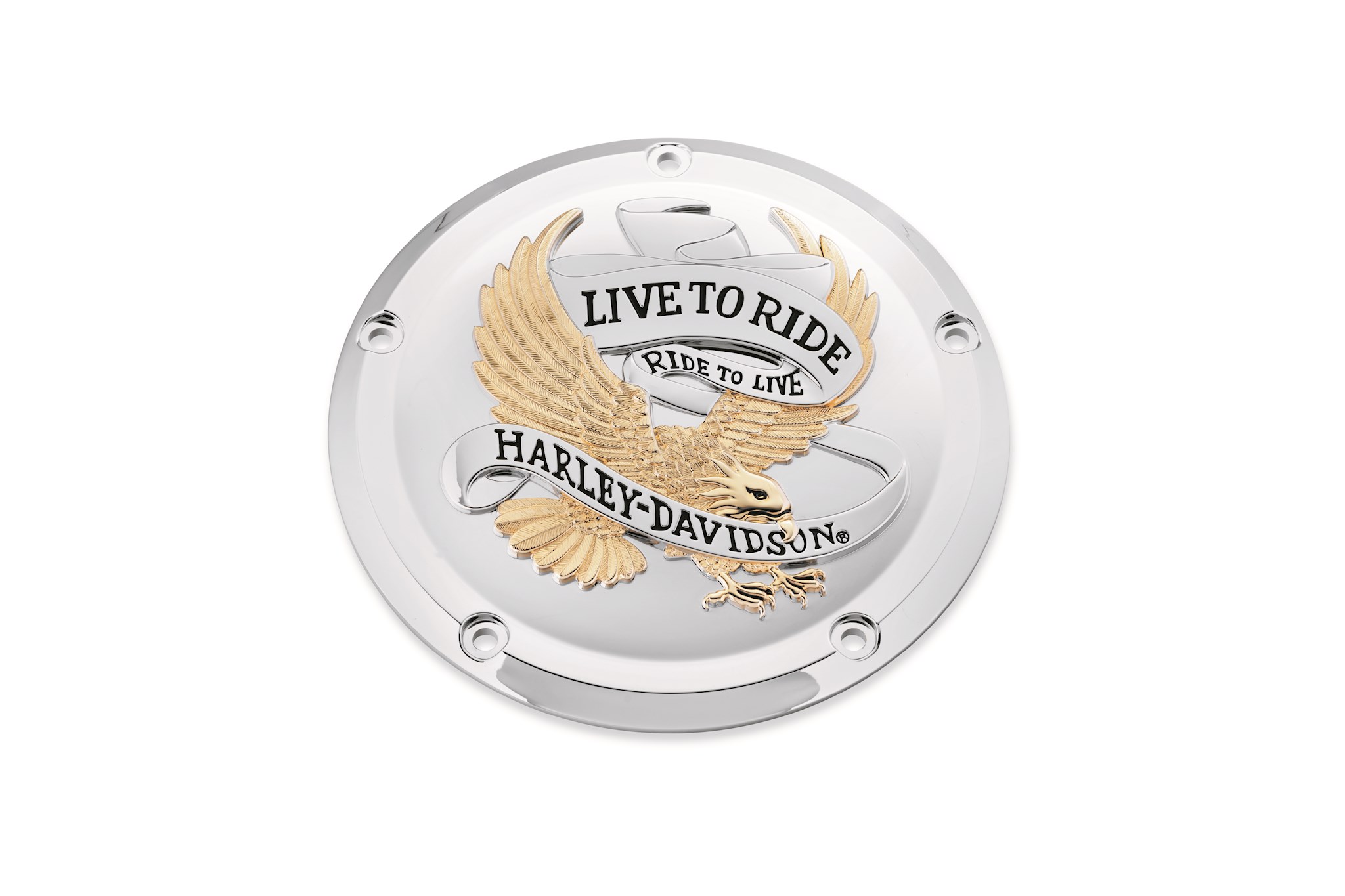 Live To Ride Collection Derby Cover, Gold and Chrome