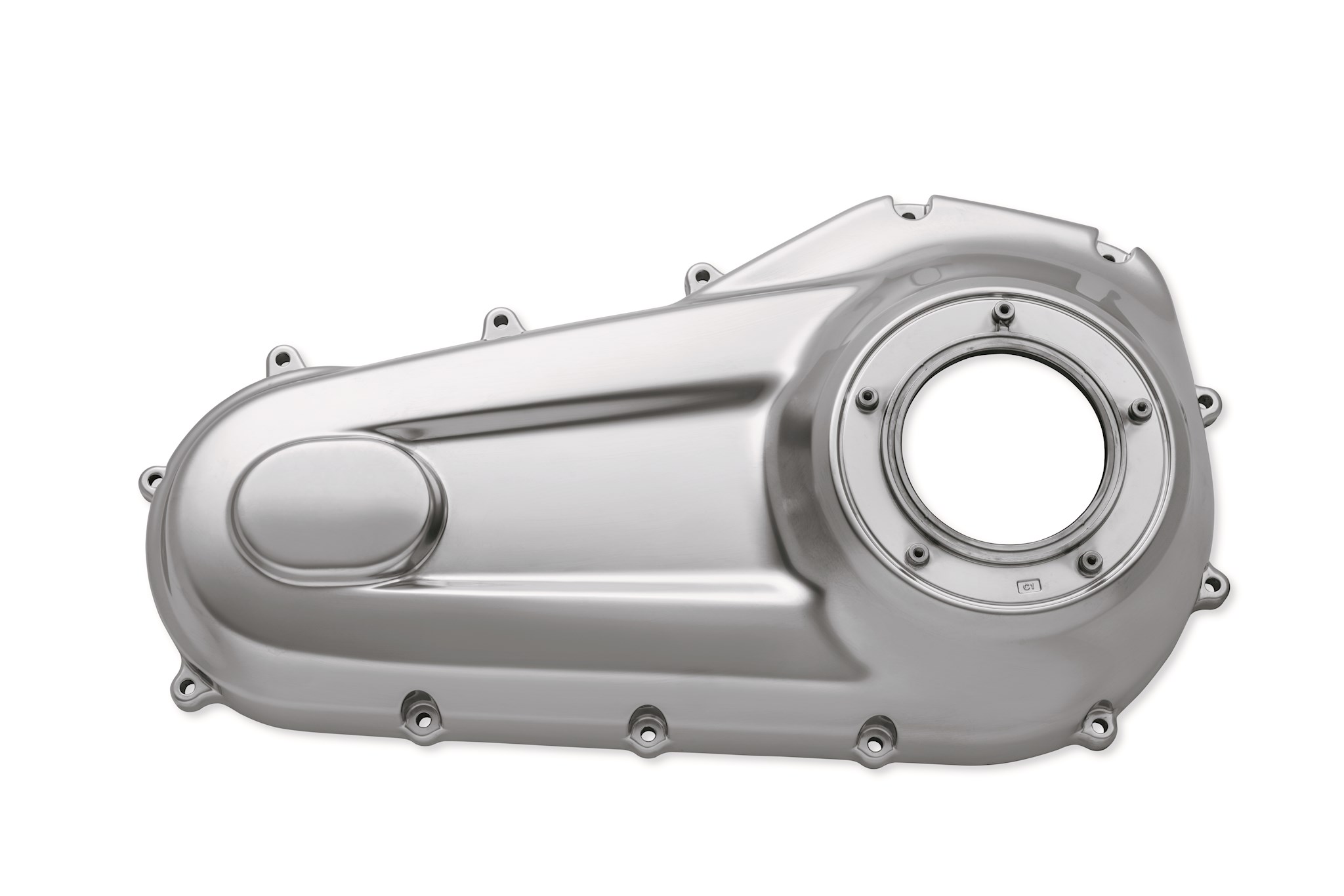 Shaped to slim the bike's left side profile, this Narrow-Profile Primary Cover provides short-limbed riders a straight leg path to the pavement. Original Equipment on '19-later Softail models.