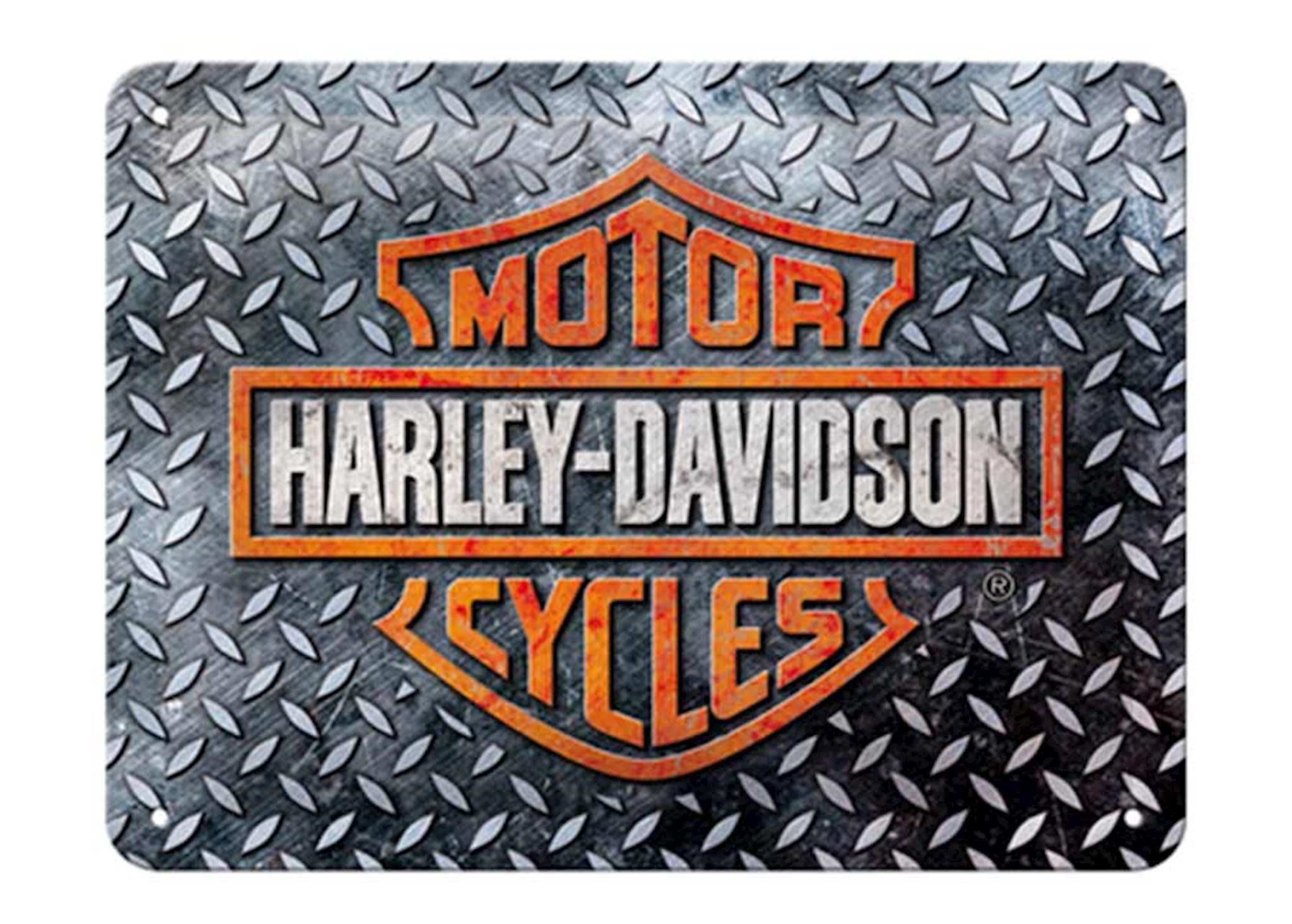 Harley-Davidson Garage Logo. thick steel panel. clinched edges. pre-drilled holes. curved and embossed. size: 15 x 20 cm.