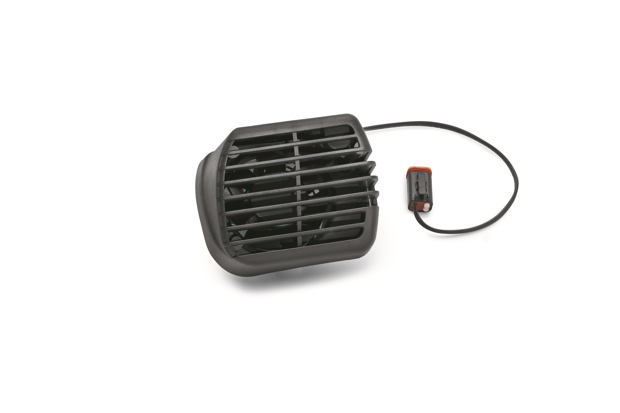 Keep your cool on a sweltering summer day. Engineered to maximize rider and passenger comfort in high temperature situations, the CoolFlow™ Fan is the perfect addition if your bike is subjected to parade duty, rush hour traffic, or extreme temperature environments. Unlike traditional fan kits that try to cool the engine by blowing air across the cylinders and often onto your legs, the CoolFlow Fan Kit keeps the riders comfortable by pulling air away from the rear cylinder and exhaust pipe, and directing it toward the ground. The fan suction generates a low pressure region near the riders to balance the natural “up and out” convection air flow in the area behind the engine. The wind-tunnel tested fan is tucked away above the transmission, and when combined with midframe air deflectors, significantly drops the temperature the seated rider experiences. The CoolFlow Fan features switched On/Off/Auto operation on ’17-later models and On/Off on ’09-’16 models. In the “ON” mode, the fan is active at low speeds, and will turn off when the bike reaches 40mph. As speed drops, the fan turns back on at 35mph. This logic program prevents the fan from cycling on and off during low speed changes. On ’17-later models, the AUTO setting operates based on a combination of speed parameters and specific engine and ambient temperatures. Built to withstand the harsh motorcycle environment, the all-weather CoolFlow Fan is 100% waterproof and includes everything you need for installation. The plug-and-play design is integrated with the vehicle electronics, so “On/Off” fan operation is indicated in the odometer screen. Your dealer will enable this function in the Electronic Control Module (ECM) and you’re ready to roll. Odometer fan status display feature availability varies by model and may not be available for your vehicle.