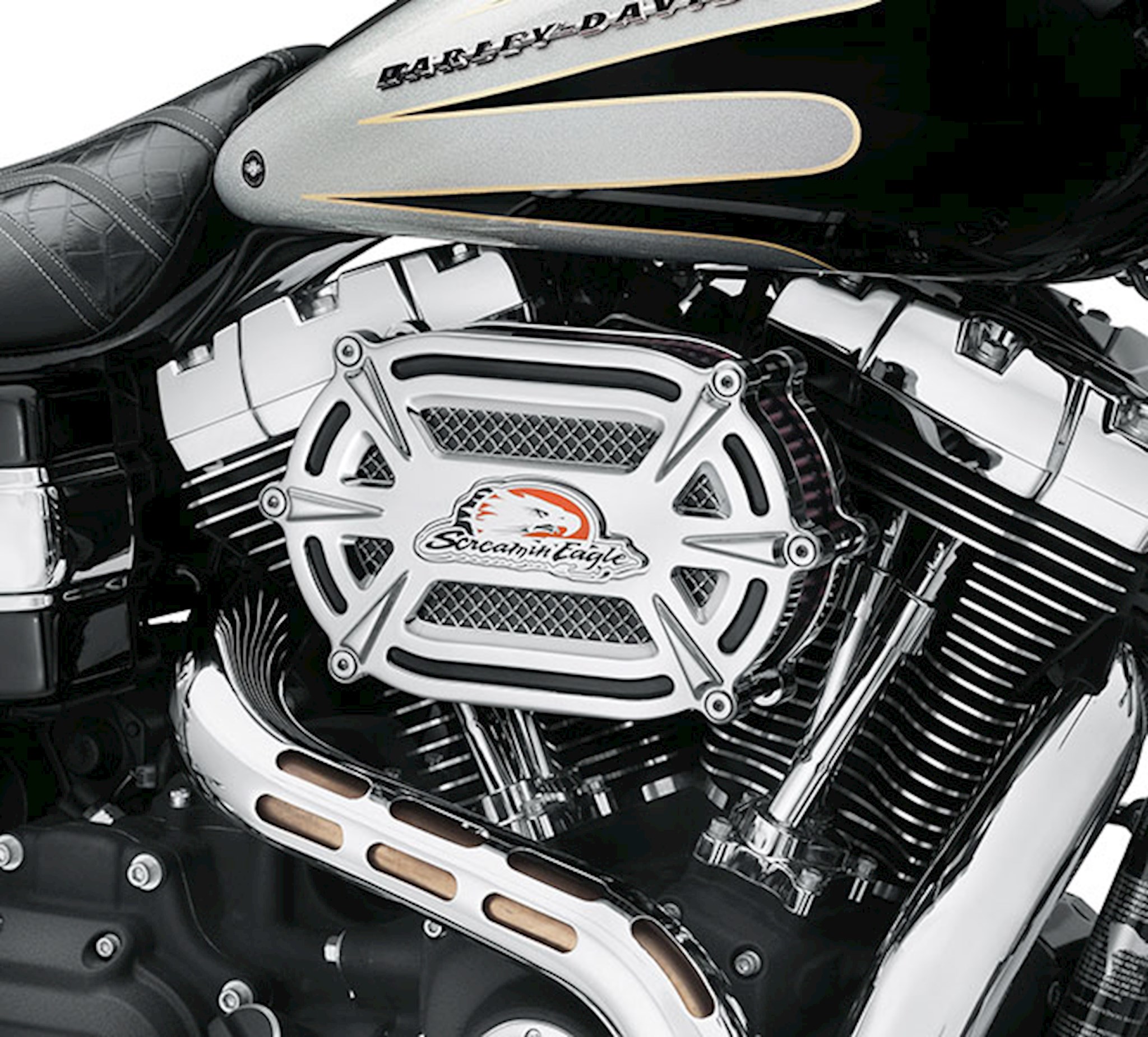 The proven, track-inspired exposed element Ventilator air cleaner with a completely totally unique look. This low-profile oval air cleaner features a 360° exposed filter element for maximum air flow and a stylish machined billet aluminum cover for style. Available in your choice of chrome or cut back black finish, the two-piece billet cover surrounds the filter and features a full color Screamin' Eagle® medallion. The cast back plate ensures smooth air flow to the throttle body and the included rain sock protects the filter and engine from drawing in moisture during inclement weather. This easy-to-install kit includes billet air cleaner cover, high-flow filter element, back plate, protective rain sock and all required installation hardware. Street legal when used with stock mufflers. All EFI-equipped models require ECM calibration* (priced separately). Fits '09-later Touring and Trike models. Also fits '11-later FLSTSE2/3, FLSTNSE and FXSBSE models.
