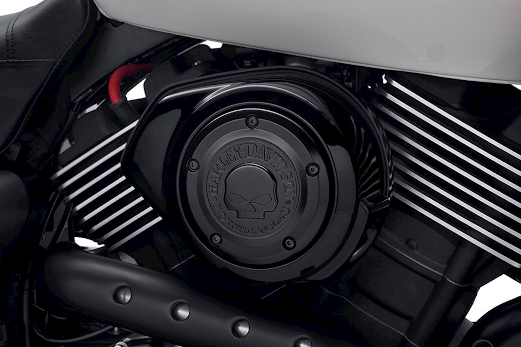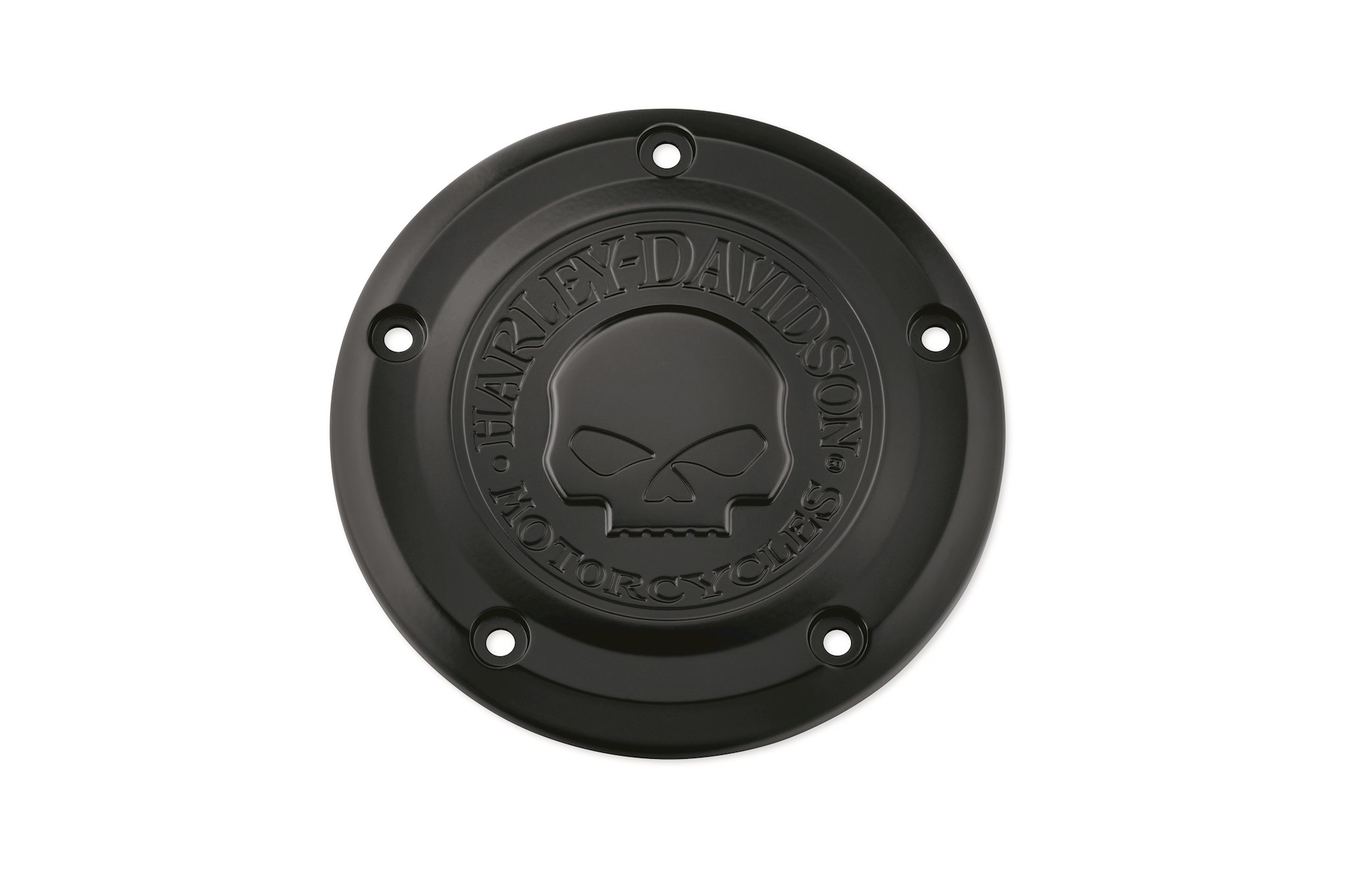 Penned at the hand of Willie G, the famous Skull Collection makes a shift to the dark side. Completely drenched in matte black, the raised skull and surrounding Harley-Davidson Motorcycle script adds a subtle ominous touch to your ride. The matte finish easily coexists alongside gloss black or wrinkle black surfaces. The complete collection of components includes matching black hardware.