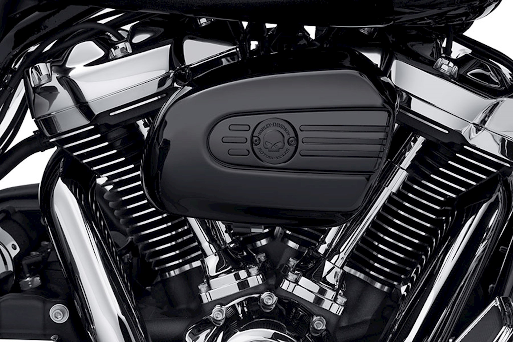 Fits ‘17-later Touring and Trike models with Original Equipment wedge shaped air cleaner cover.