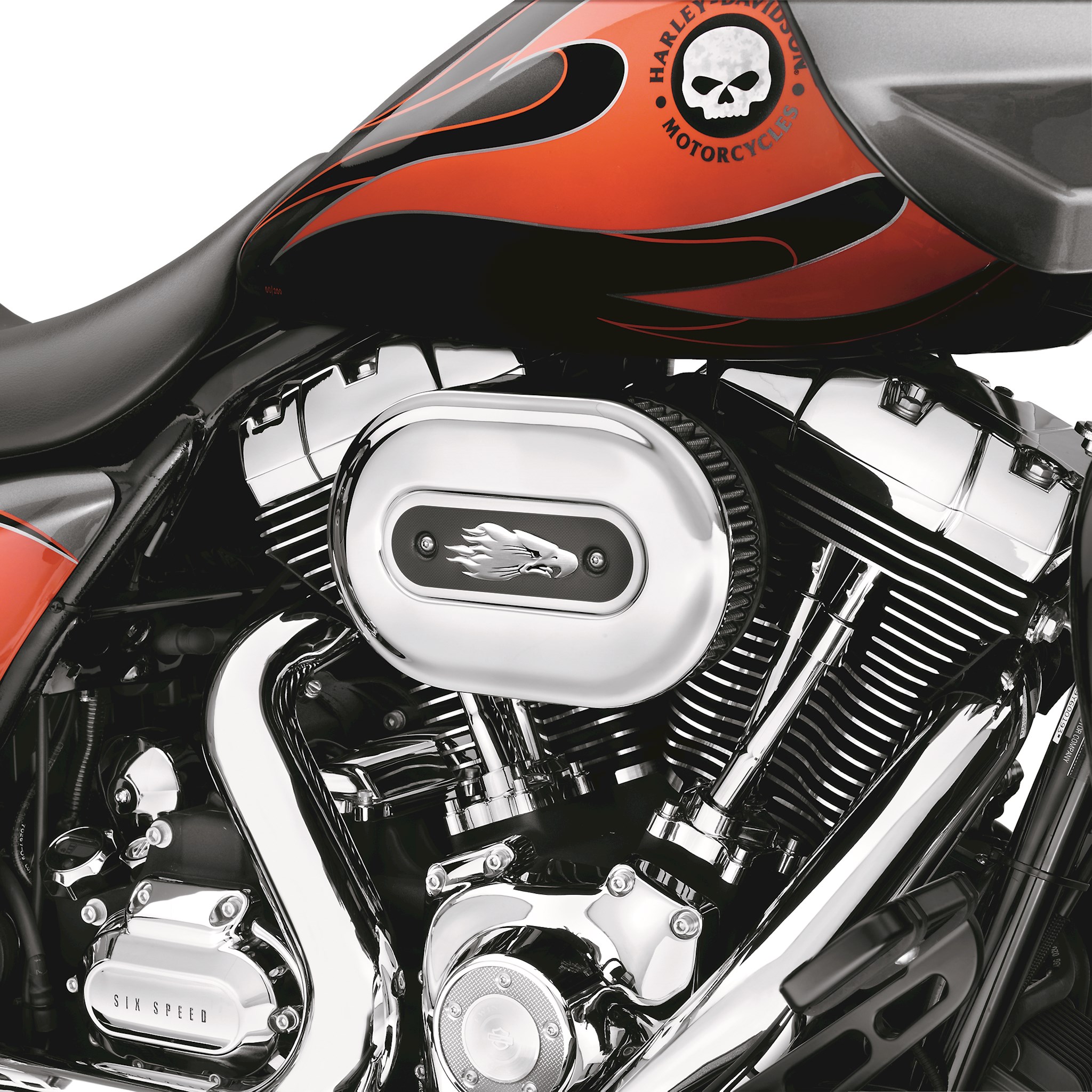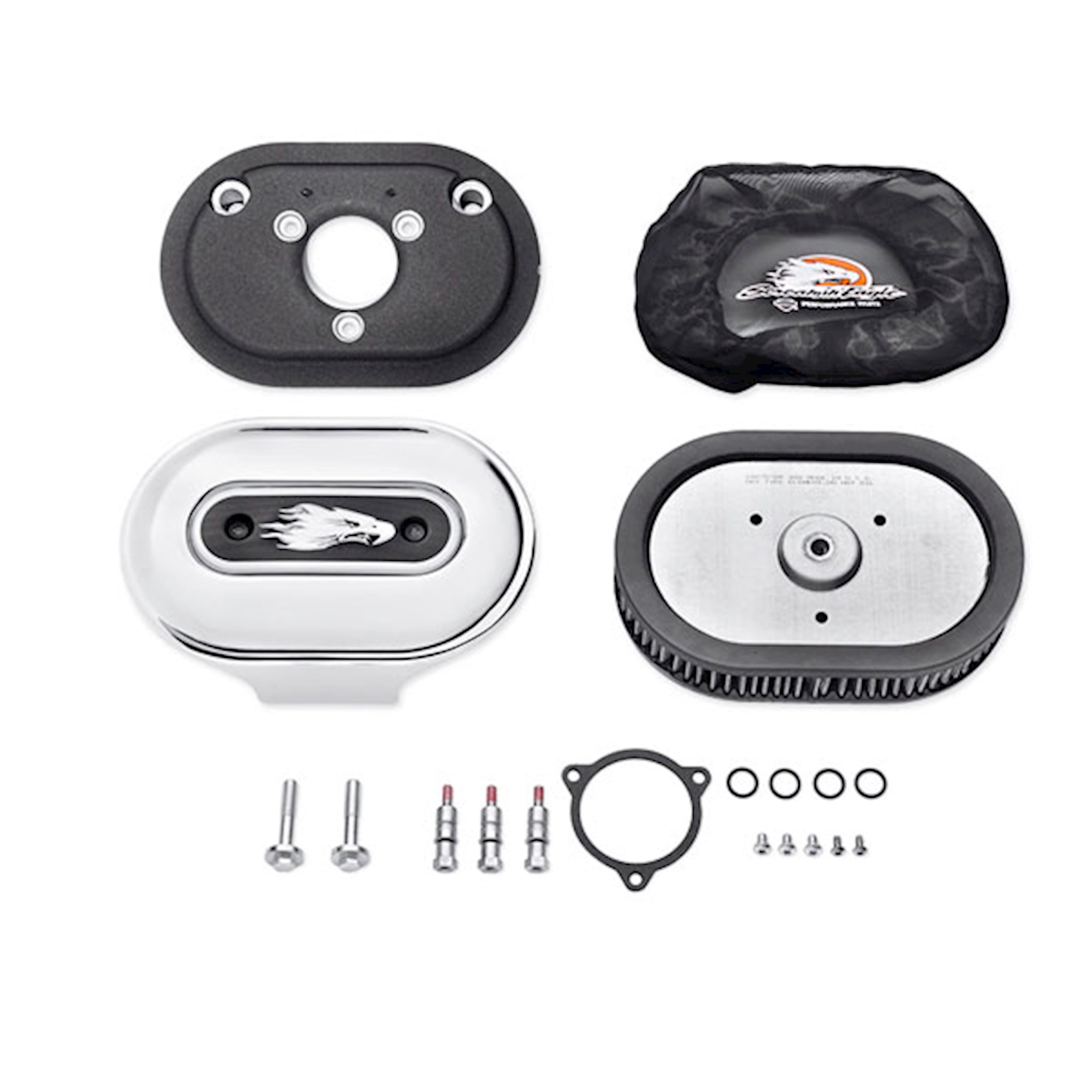 Stylish low-profile exposed element air cleaner kit provides increased airflow to boost the power of your fuel-injected engine. The track-inspired exposed element adds a purposeful look to the bike and the included waterproof rain sock protects the filter during inclement weather. This easy-to-install kit includes low-profile air cleaner cover, high-flow filter element, back plate, Screamin' Eagle® badge, protective rain sock and all required installation hardware. Street legal when used with stock mufflers. All EFI-equipped models require ECM calibration* (priced separately). Fits '09-later Touring and Trike models. Also fits '11-later CVO™ Softail® models.