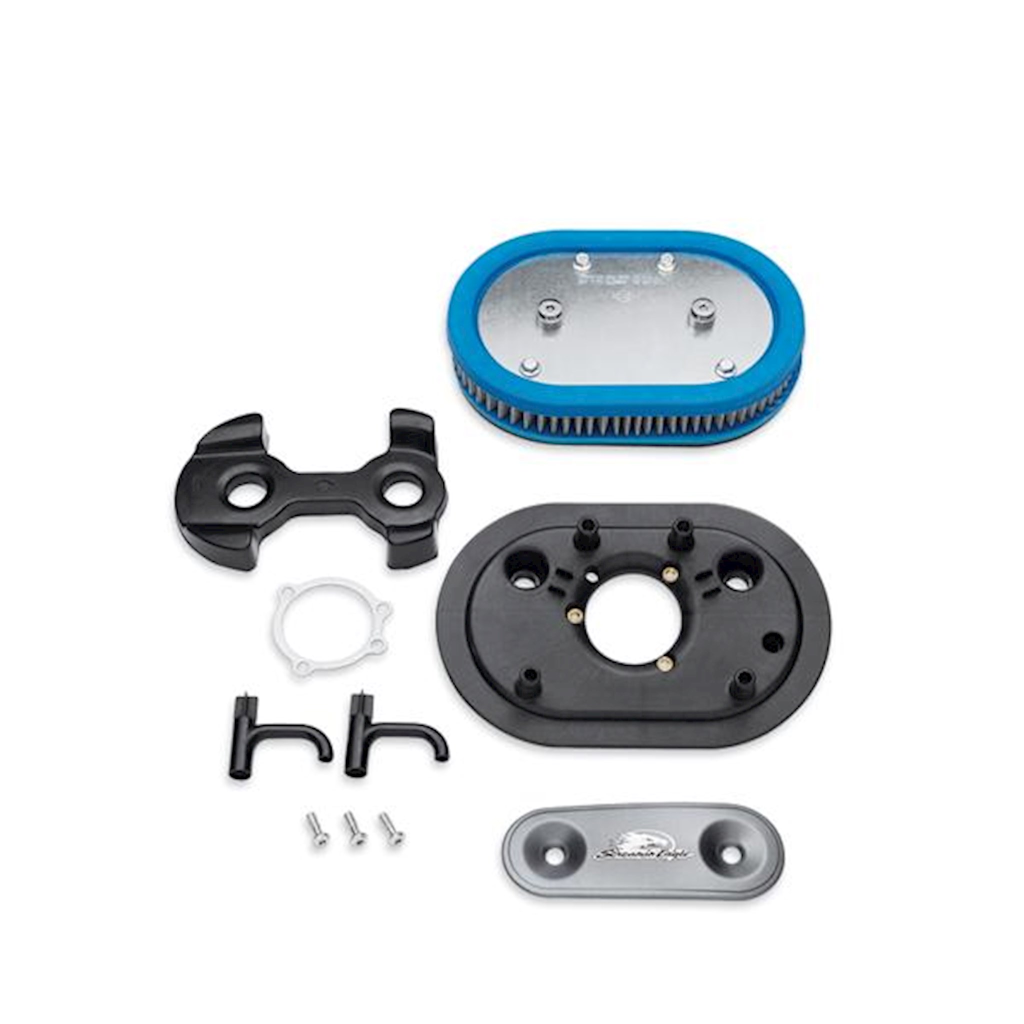 The XL High-Flow Air Cleaner Kit provides increased airflow to boost the power of your fuel-injected Sportster model. The complete kit features a composite air cleaner back plate, air cleaner cover adapter, a high-flow washable synthetic media filter element that does not require oiling and a breather system that routes gasses and excess oil directly into the intake. Kit also includes cover trim and all mounting hardware. Street compliant when used with stock mufflers. 50-State U.S. EPA compliant.