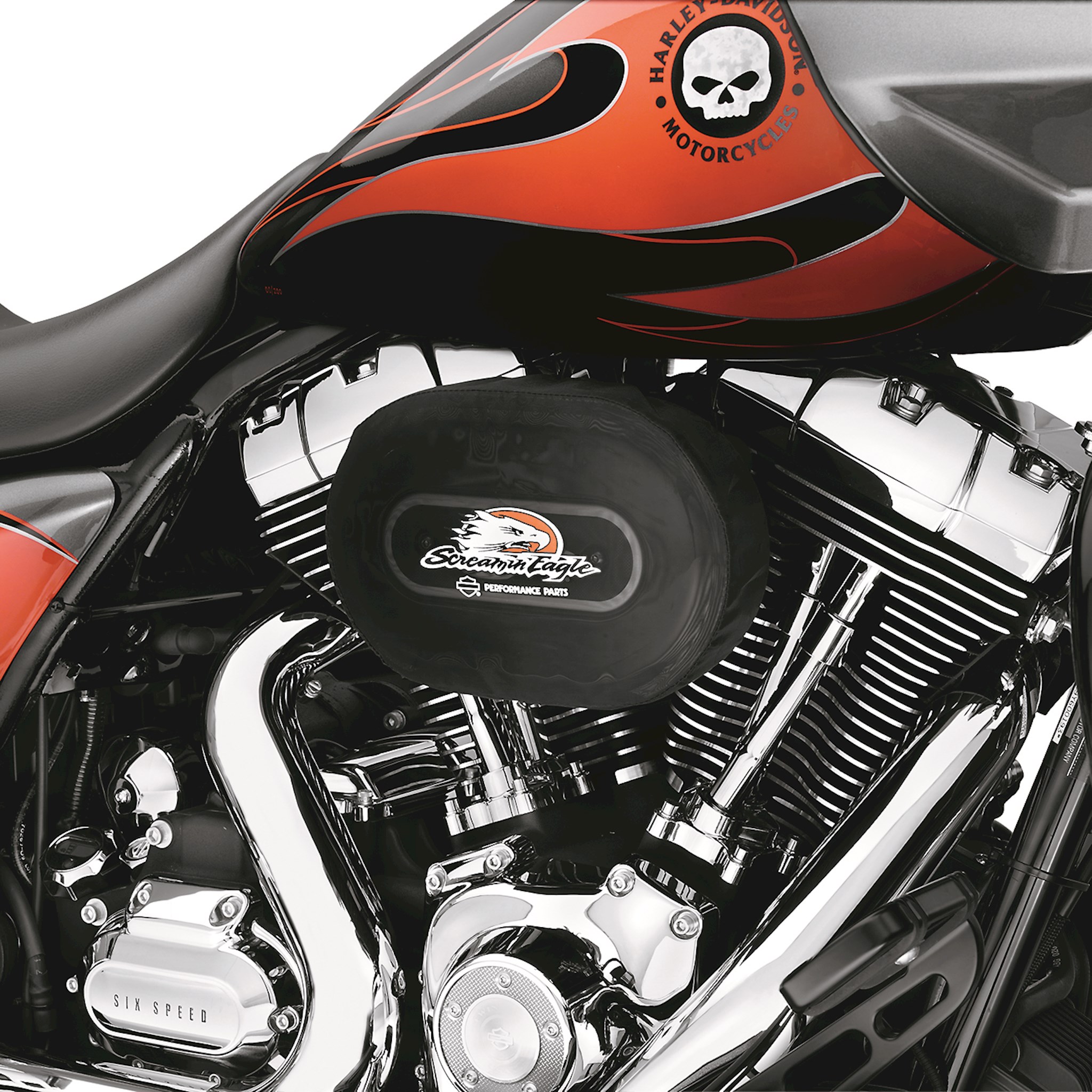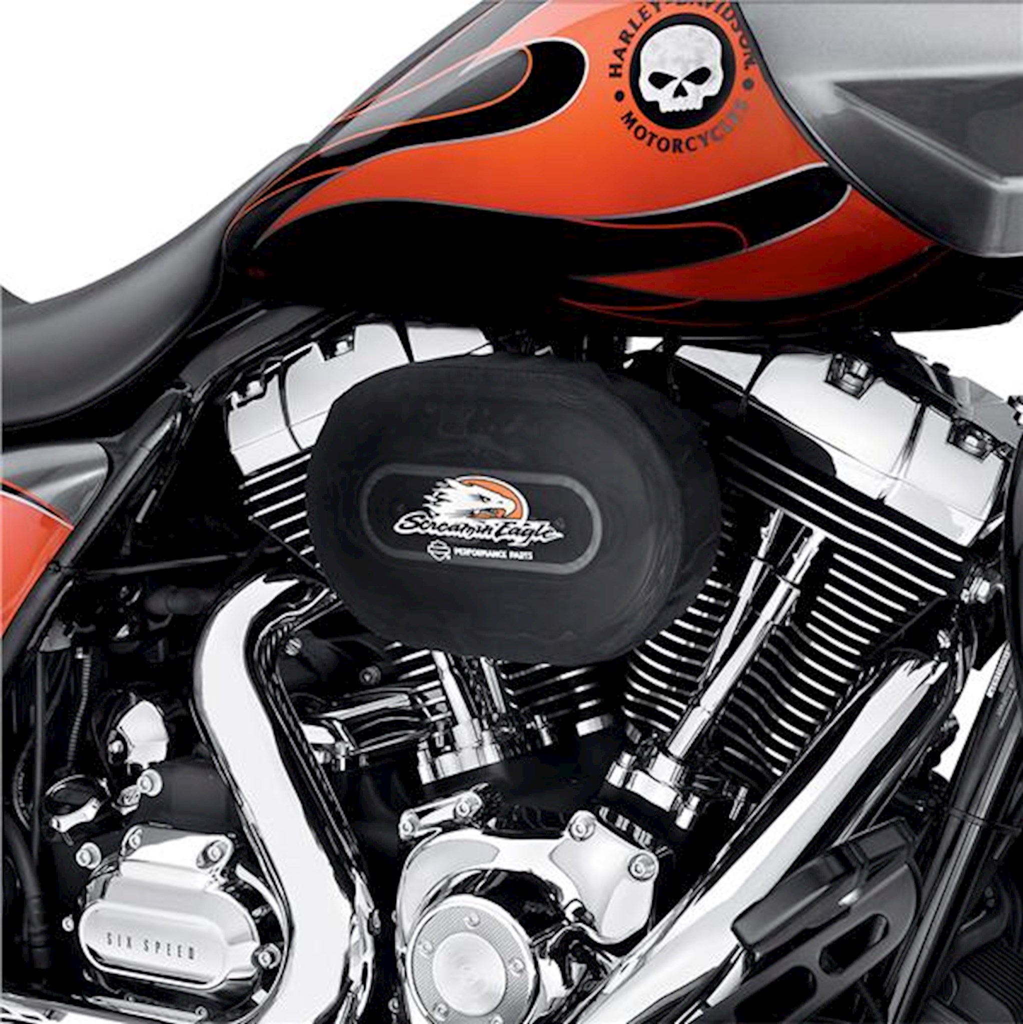 Stylish low-profile exposed element air cleaner kit provides increased airflow to boost the power of your fuel-injected engine. The track-inspired exposed element adds a purposeful look to the bike and the included waterproof rain sock protects the filter during inclement weather. This easy-to-install kit includes low-profile air cleaner cover, high-flow filter element, back plate, Screamin' Eagle® badge, protective rain sock and all required installation hardware. Street legal when used with stock mufflers. All EFI-equipped models require ECM calibration* (priced separately). Fits '09-later Touring and Trike models. Also fits '11-later CVO™ Softail® models.