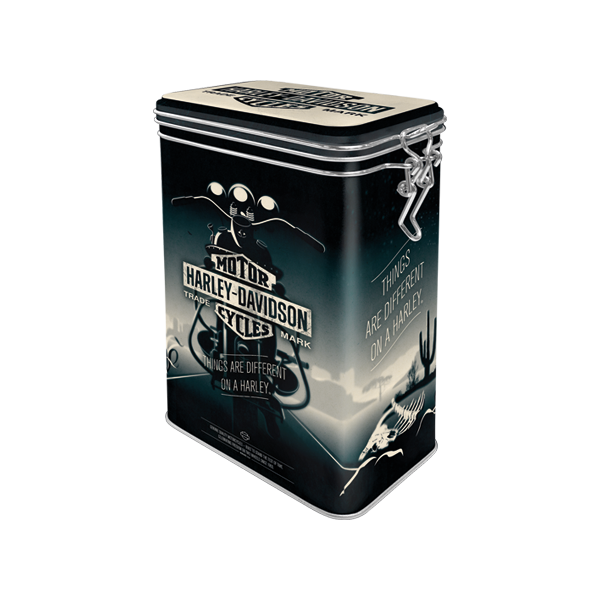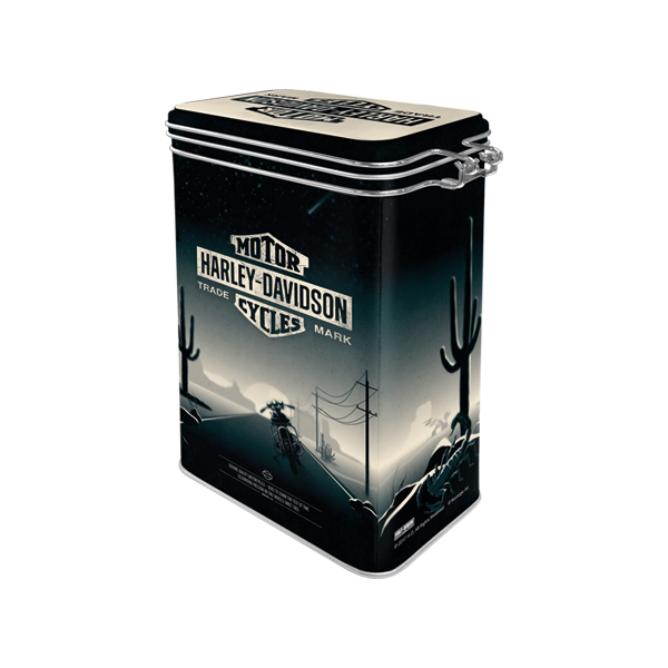 You'll receive a high-quality storage tin with a nostalgic design and a beautiful matt shimmering imprint. The lid shows an appealing embossing to accentuate certain areas of the design. The tin box is food safe and the lid seals tightly. Hence your stored coffee, espresso, tea, and much more stays fresh for a long time. With a capacity of 1, 3L the box is perfect for preserving 1 pound of coffee - With style. The clip top lid with a high-quality steel bracket can be opened and closed easily. The clip top box will be a beautiful eye-catcher in your kitchen- try it out. Size: 7,5 x 11 x 17,5 cm.