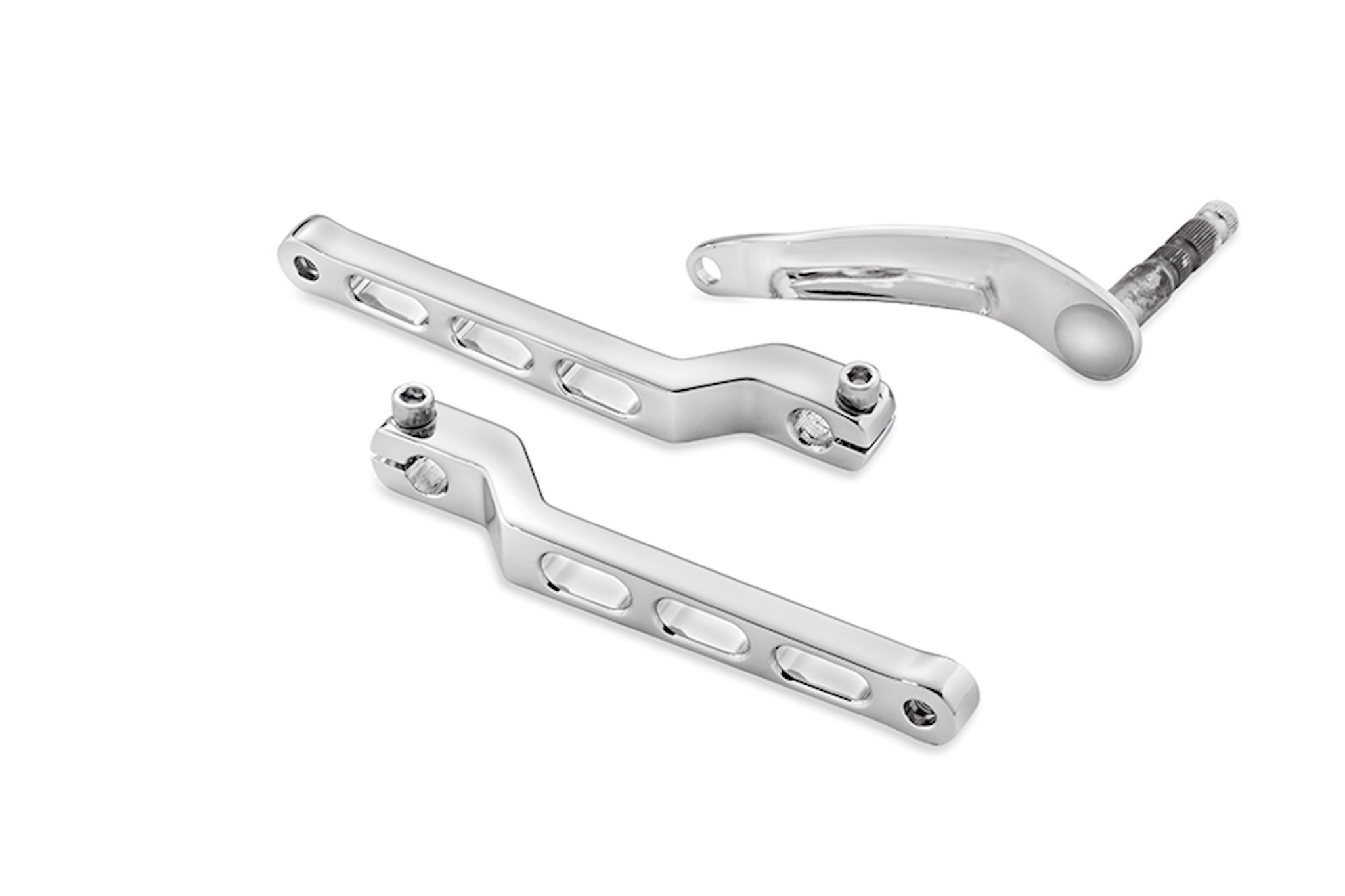 Add a traditional heel-toe shift action and a contemporary new look. These Billet Style Shift Levers are forged from aluminum, then machined and polished for a beautiful, custom finish. Available in your choice of mirror chrome, satin black powder coat or edge cut black anodized and machined aluminum finishes. Kit includes a front and rear lever and chrome hardware. Fits '18-later FLDE, FLFB, FLFBC, FLHC, FLHCS and FLSL models equipped with footboards.
