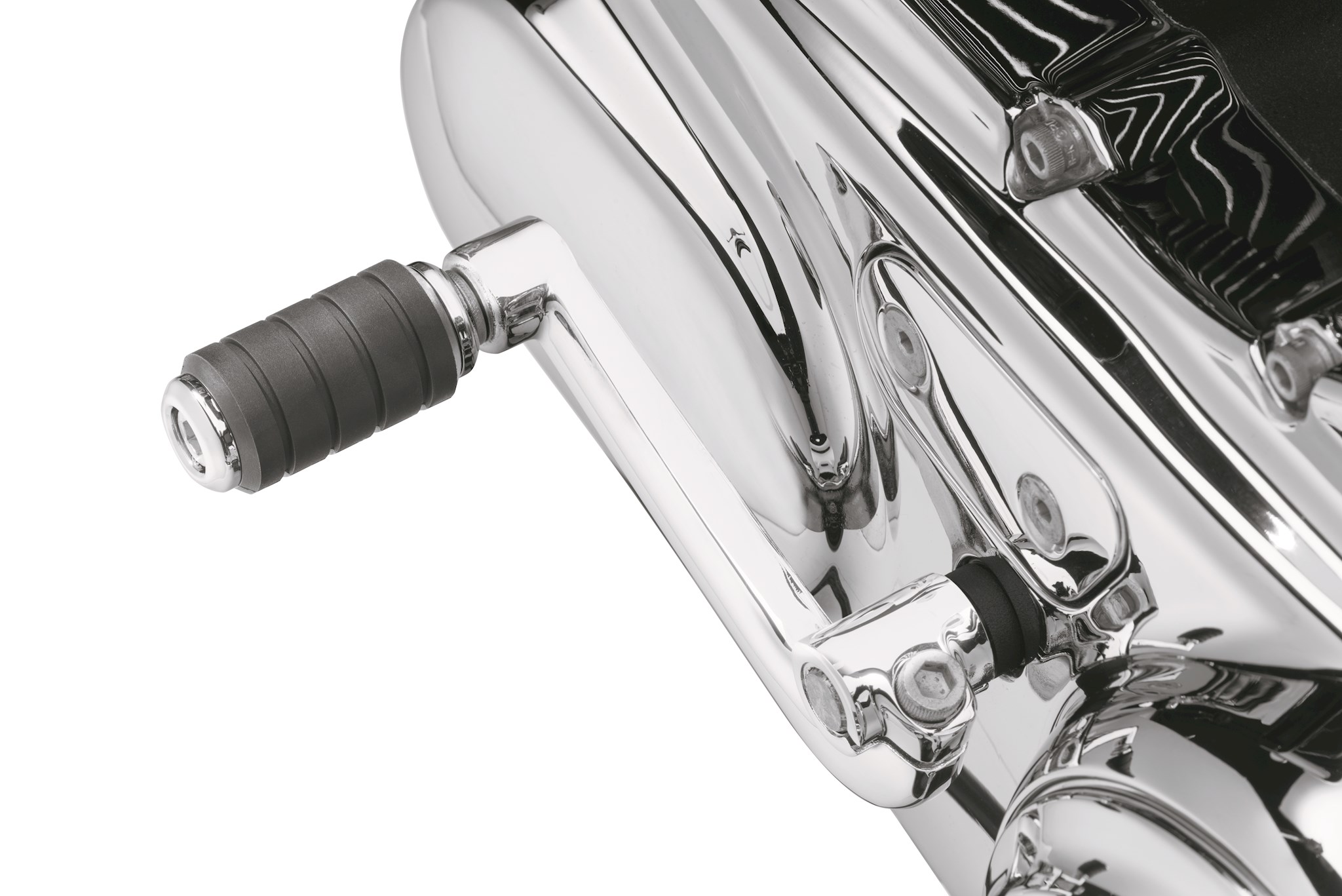Understated but powerful, The Kahuna Collection Controls feature mirror-like chrome surfaces surrounded by rich, black rubber that provides grip and traction where needed. These chrome controls are styled to complement other Kahuna Collection Accessories and, the Rider Footboards also feature a rich red Bar & Shield logo to complete the look.