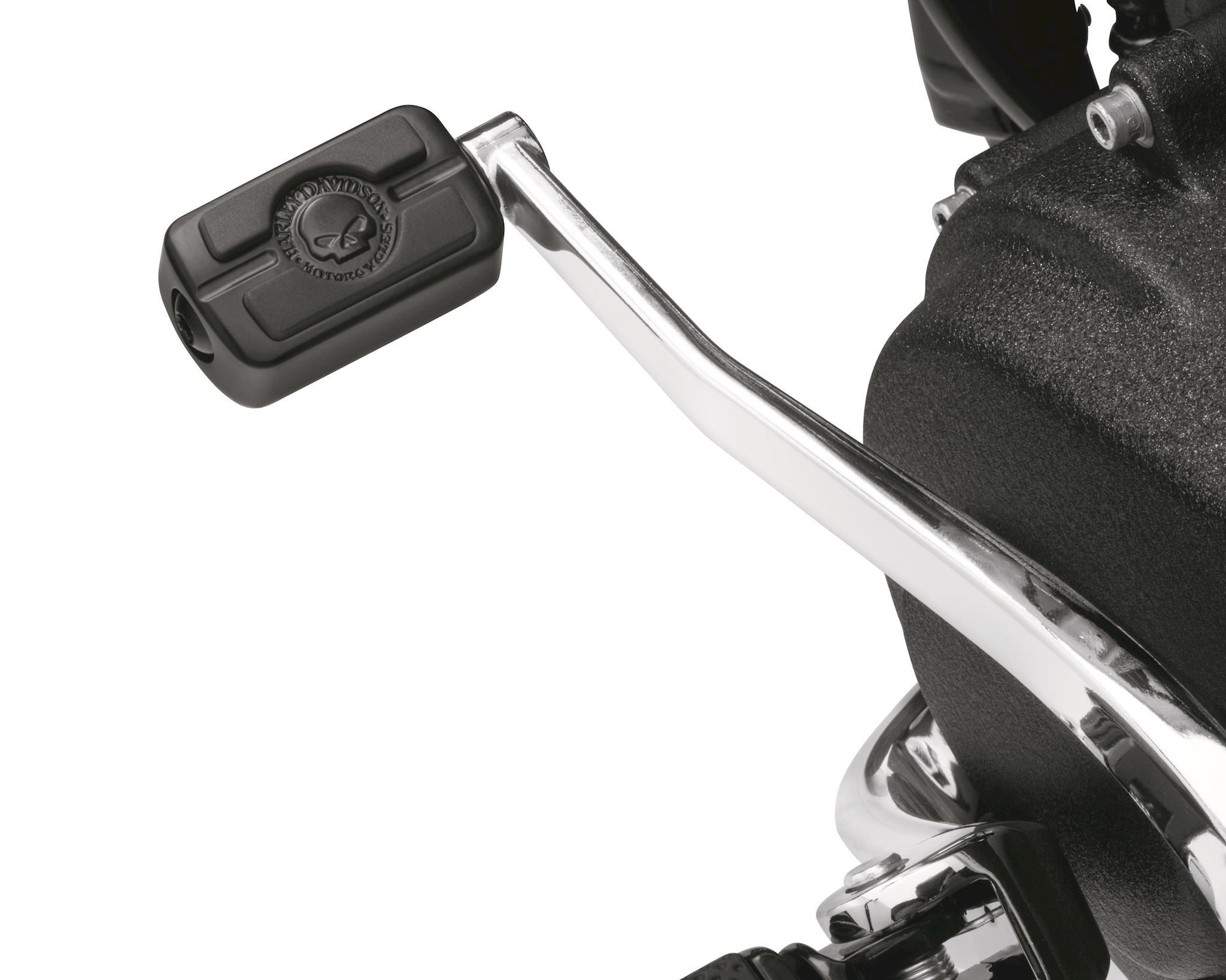 WILLIE G SKULL COLLECTION - BLACK As vast and infinite as your style, these Willie G Skull Collection Accessories are drenched in rich obsidian black and let you take the blacked-out look to a whole new level. The menacing dimensional skull and surrounding Harley-Davidson Motorcycles script add just the right touch of attitude to their clean, dark as night backdrops. Styled to complement the Willie G Skull Collection Foot Controls , this easy-to-install shifter peg can be rotated to a comfortable position and the smooth back protects the toe of your boot from wear while shifting.
