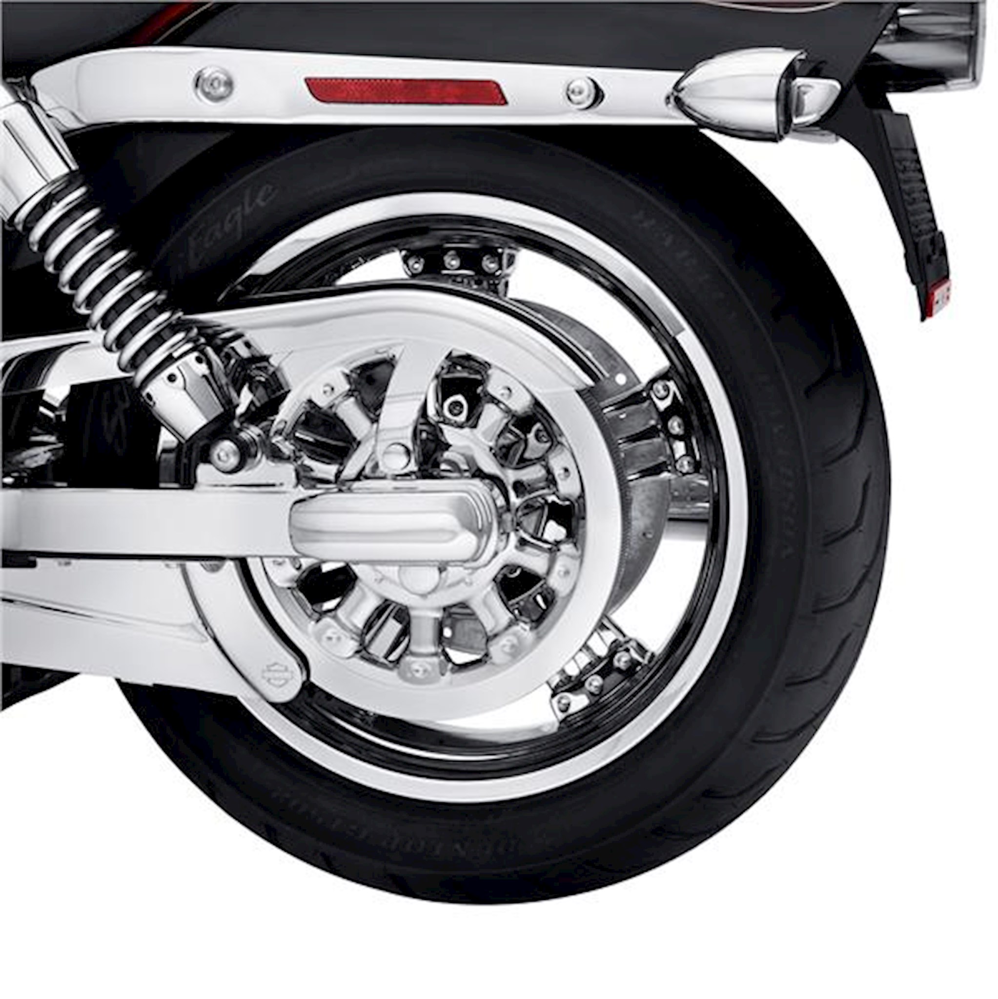 Styled to match the distinctive Magnum 5 Custom Wheel. Available in mirror-chrome or gloss black, this Sprocket Cover gives the appearance of having a custom sprocket at a fraction of the cost. Cover is easy to install with Original Equipment hardware or add the Chrome Hardware Kit P/N 94773-07 (sold separately) for a finished look. Fits '07-later Dyna models (except FLD).