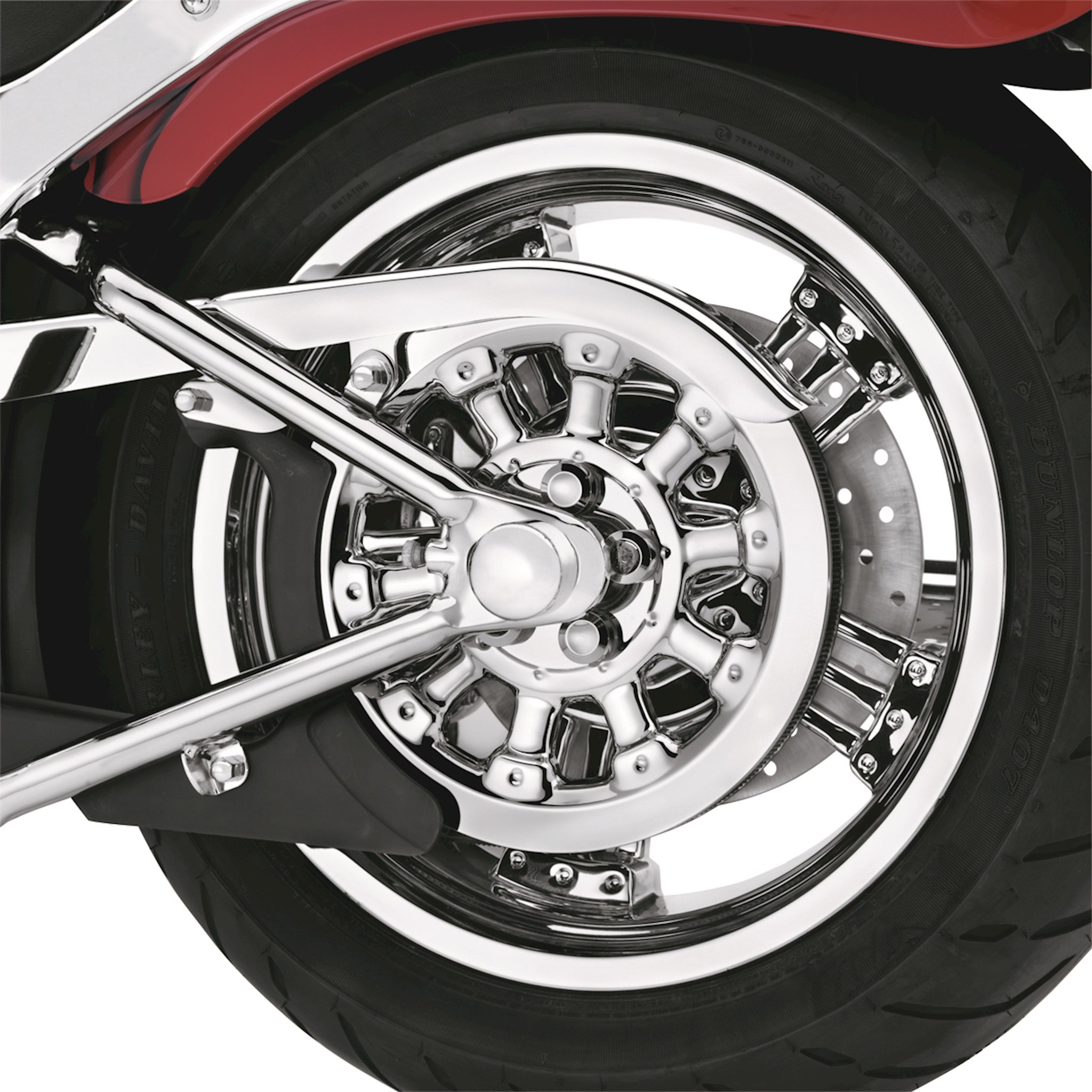 Styled to match the distinctive Magnum 5 Custom Wheel. Available in mirror chrome or gloss black, this Sprocket Cover gives the appearance of having a custom sprocket at a fraction of the cost. Cover is easy to install with Original Equipment hardware or add the Chrome Hardware Kit P/N 94773-07 (sold separately) to your Softail® model for a finished look. Fits '07-later Softail (except FLSTNSE, FXCW, FXCWC, FXSB and FXSBSE).