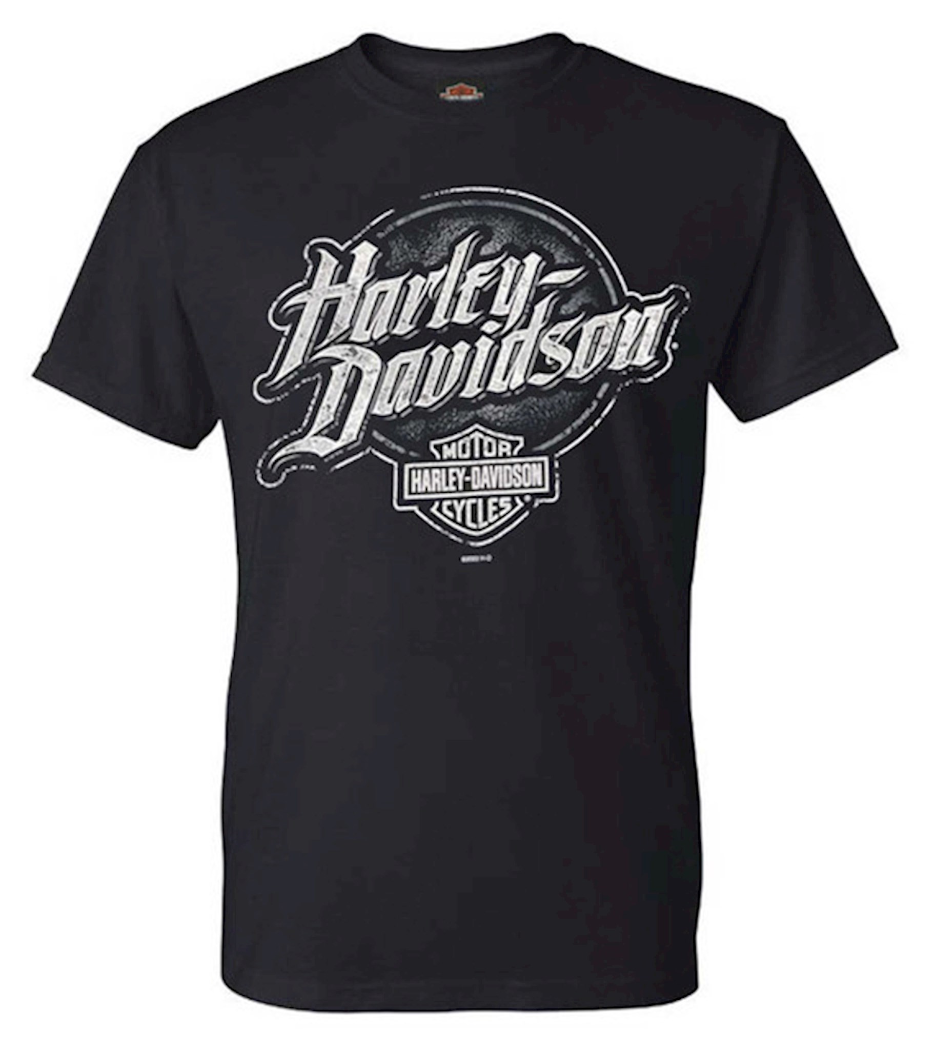 Decked out in a totally Harley® graphic. Custom screen printed H-D® script paired with an iconic Bar & Shield logo. Back features Motor Saloon Harley-Davidson® Dealer imprint. Classic style crew neck, traditional comfort fit. Soft and comfortable t-shirt, made from 100% ringspun cotton. Guys you can never have too many H-D t-shirts!