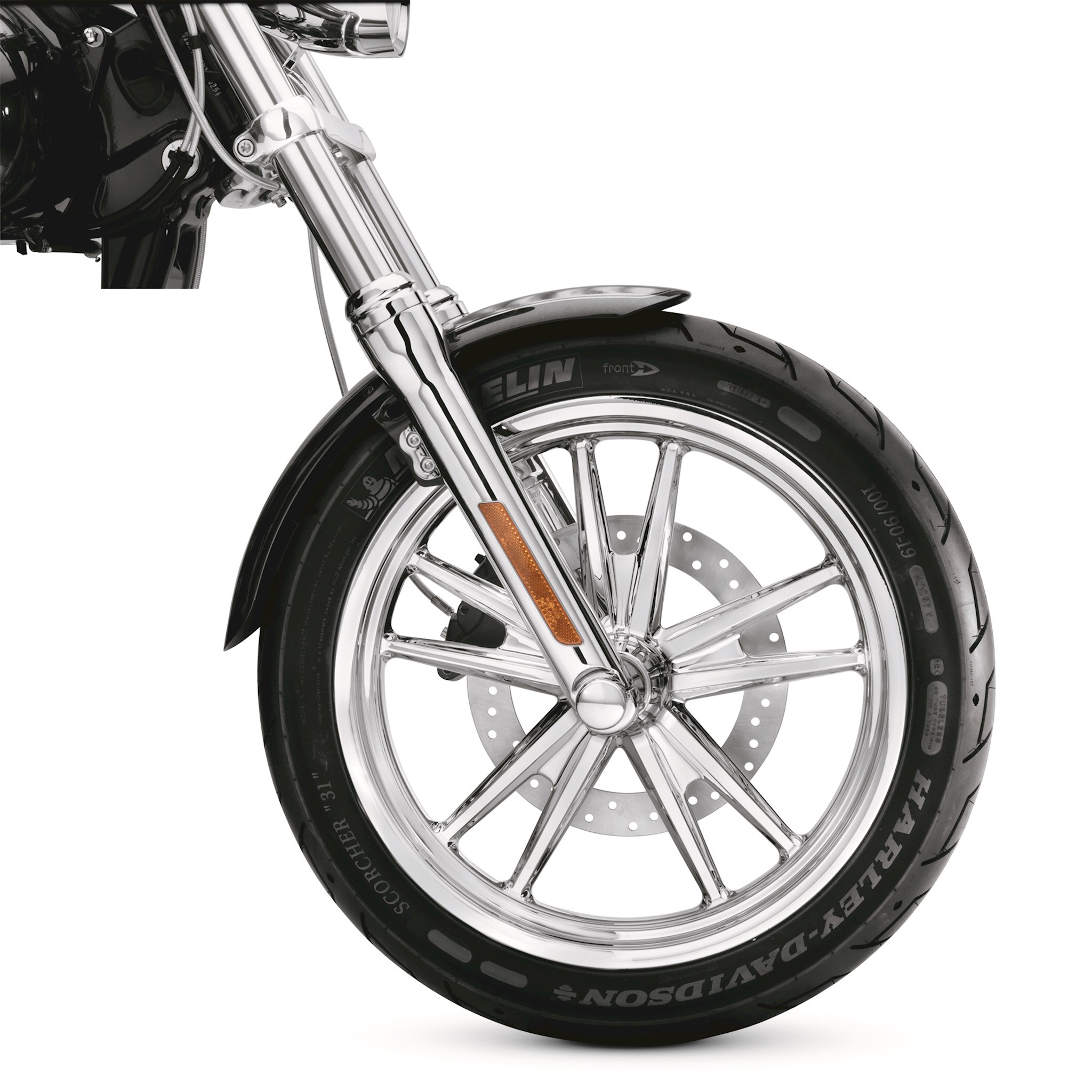 Add the brilliance of chrome without changing the distinctive custom style of your Dyna® motorcycle. This meticulously polished and chrome-plated version of the Original Equipment 10-spoke cast aluminum wheel casts glowing reflections, even while standing still. These wheels, chromed to the same strict standards you have come to expect from Harley-Davidson, are plated using custom masking that provides contamination-free bolt holes and bearing bores. This allows the installed bearings to fit as precisely as on our Original Equipment wheels, so you can be confident these wheels will ride as smooth as they look. Requires separate purchase of model-specific Wheel Installation Kit, sprocket hardware and brake rotor-specific hardware. See I-sheet for details.