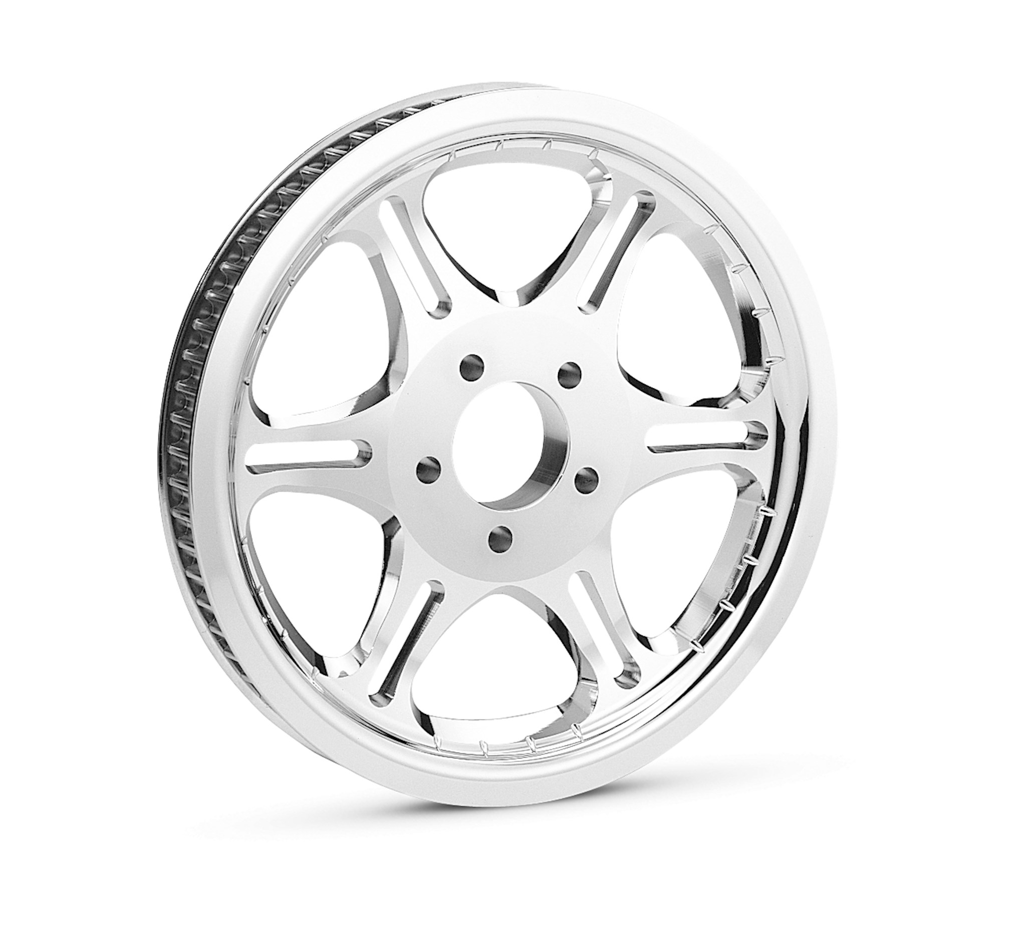 Designed to complement the wheel's styling, these custom sprockets are manufactured from 6061-T6 forged billet aircraft aluminum and precision machined to exacting Original Equipment standards. Harley-Davidson® custom sprockets are finished with a proprietary process that combines the decorative chrome with a wear-resistant surface applied to the teeth. Fits '07-later Dyna models (except Japan models and Brazilian FLD). Requires separate purchase of model-specific sprocket mounting hardware.