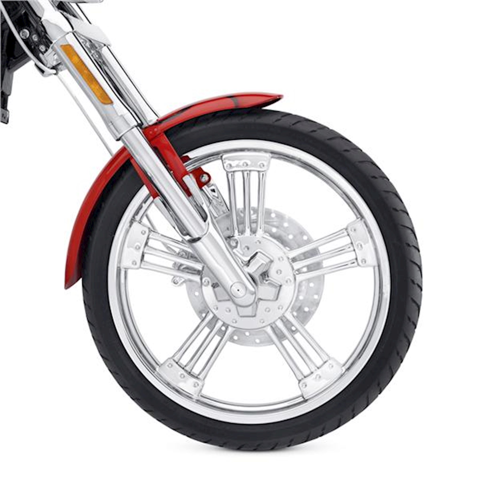 The beauty of chrome with the durability of machined brass, featuring a laser-etched Bar & Shield logo painted black. Available with a traditional, unique fluted or rugged acorn shaped cylinder. Will not seize on valve stems and includes O-rings for reliable seal. Sold in pairs. Fits '00-later FXS, FXST, FXSTD (except FXSTDSE), FXSTB, FXSTC, '00-later FXDWG and '08 FXDSE2 models. Fits '06-later Dyna® models (except FLD, FXDWG, FXDF and FXDFSE/2). Installation on models equipped with Original Equipment laced wheel will require separate purchase of Floating Brake Rotor. Does not fit with chrome Front Wheel Spacer Kit P/N 41420-08. Fits '08-later FXST, FXSTB, FXSTC, FLSTF, FLSTFB and FLSTSB models.