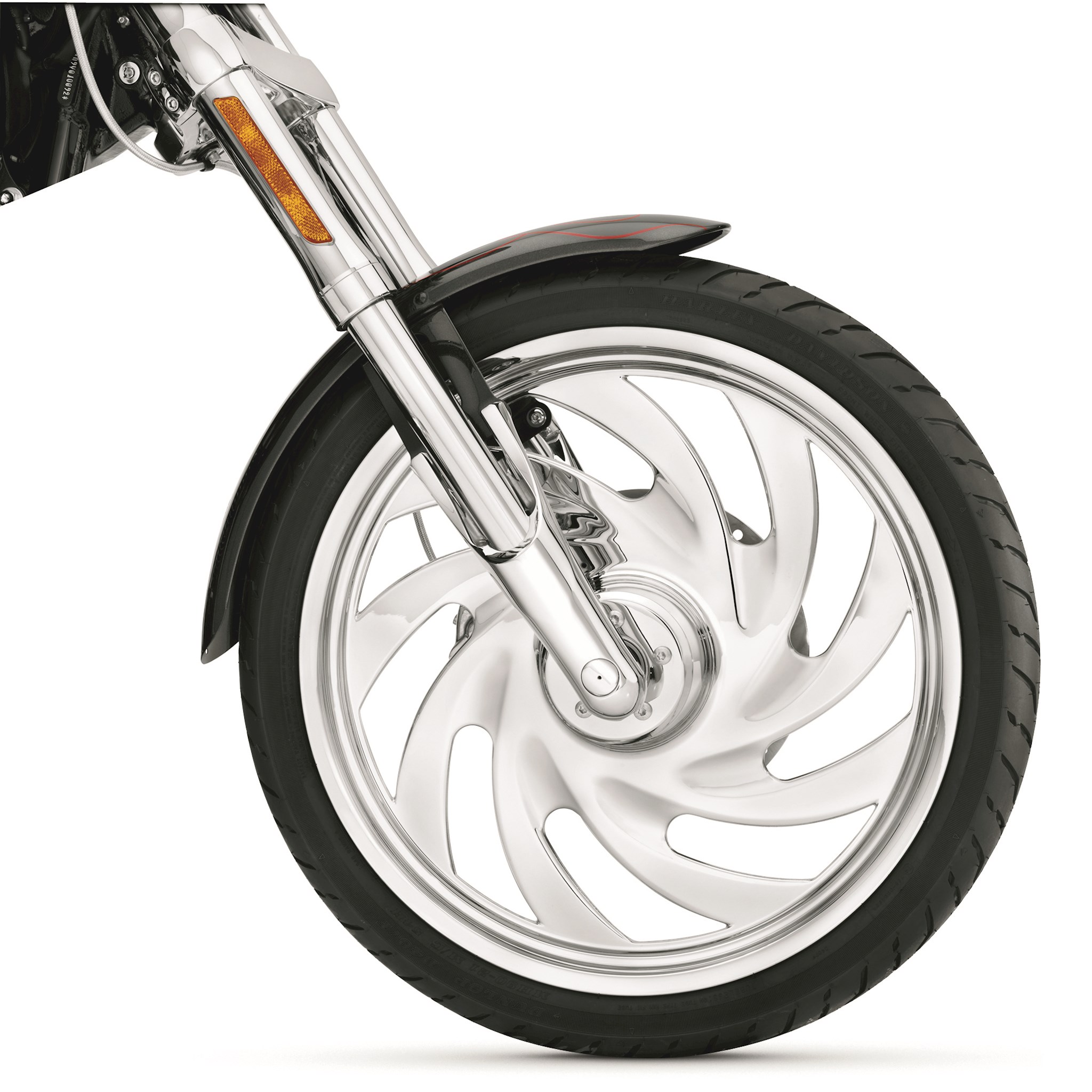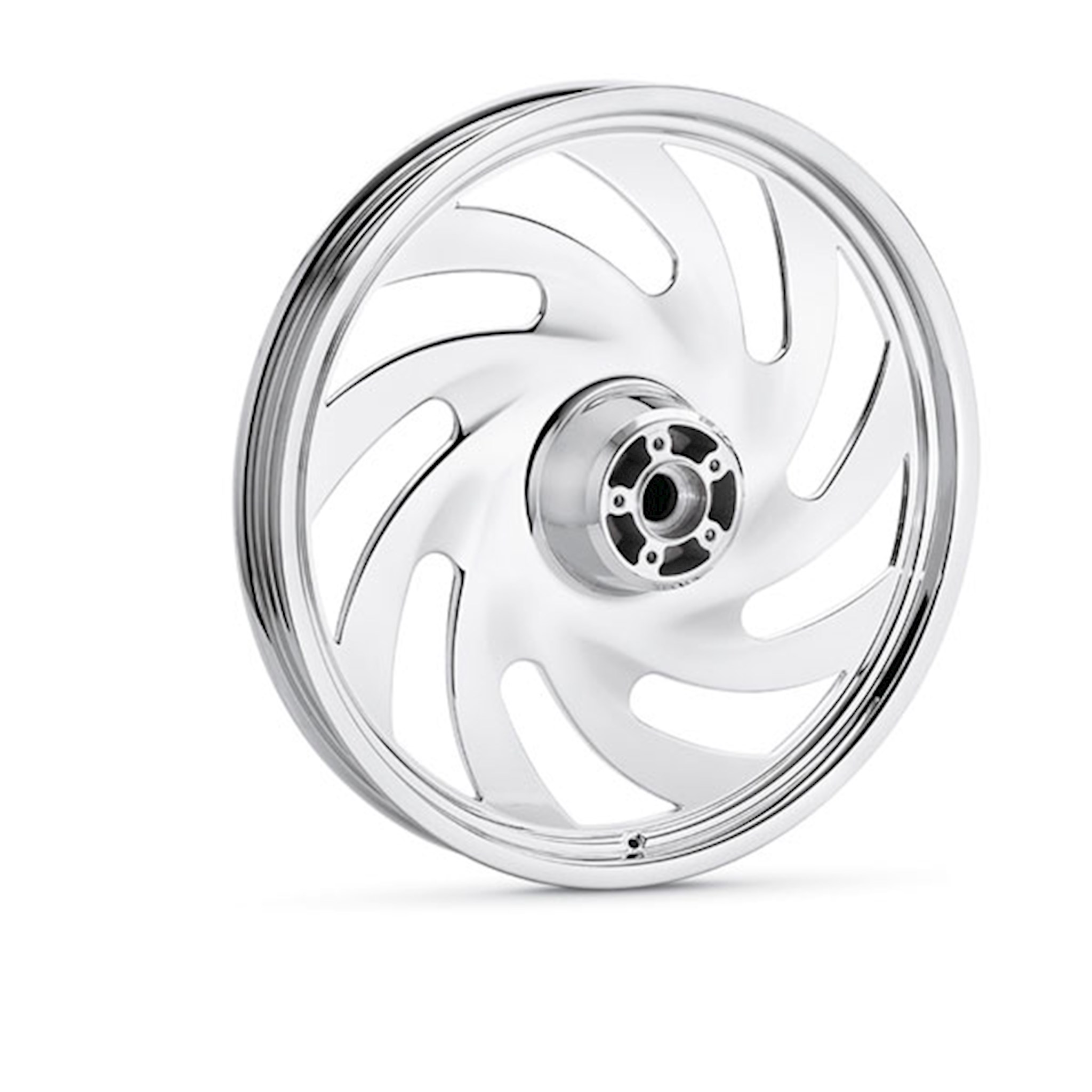 An intense storm is brewing. Nine arching spokes spin outward from the hub and blend seamlessly with the rim to add forward motion, even while standing still. The flat profile spokes and carved webs add visual intensity and the available finishes let you tailor your bike to fit the mood. Requires separate purchase of model-specific Wheel Installation Kit, Sprocket hardware and Brake Rotor-specific hardware. See I-sheet for details. Installation may require separate purchase of wheel size and model-specific tire. Fits ’00-later FXS, FXST, FXSTD (except FXSTDSE), FXSTS, FXSTB, FXSTC and ’00-later FXDWG and ’08 FXDSE2 models.