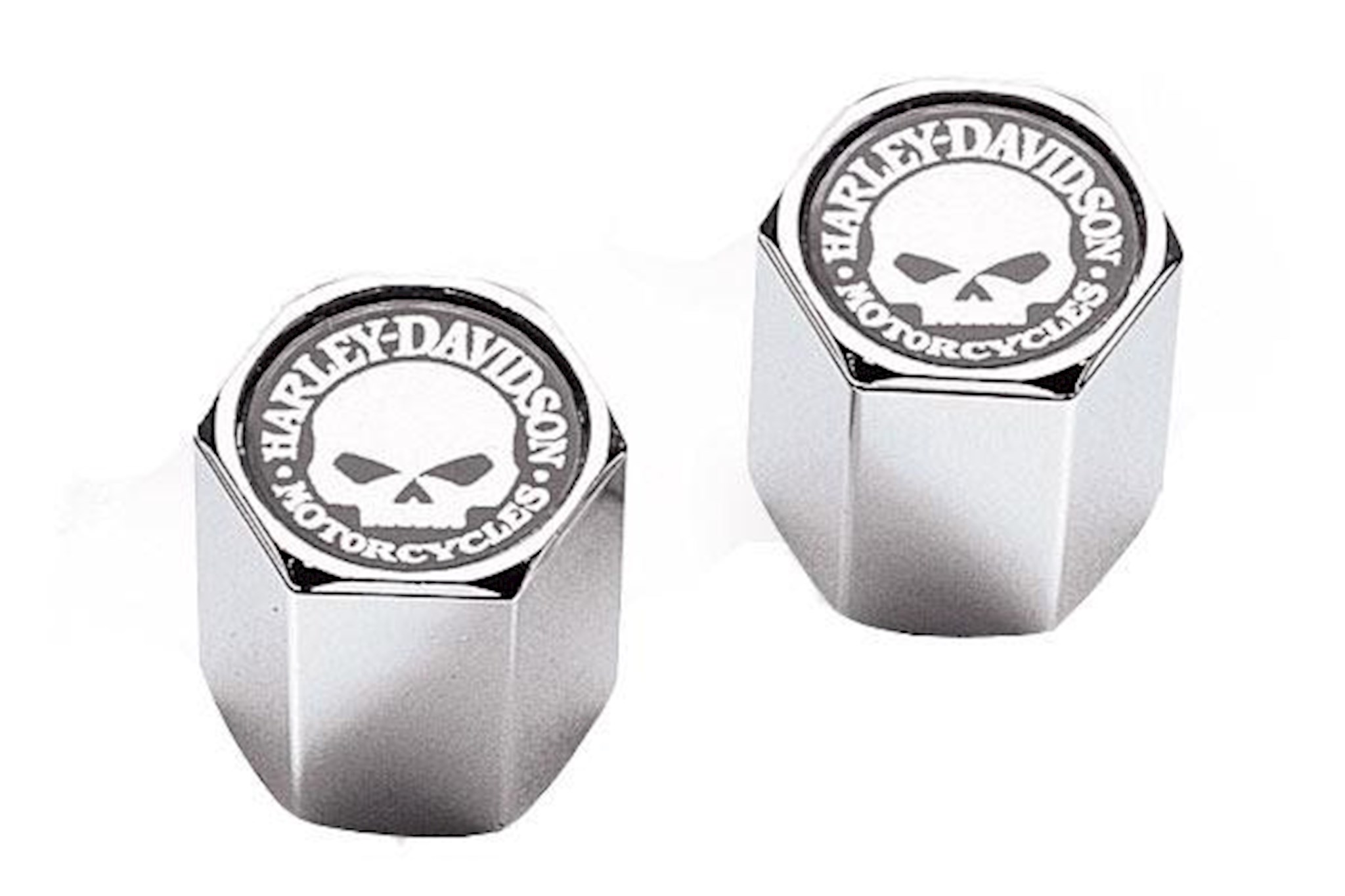 A special chrome touch with special graphics. Will not seize on valve stems and includes O-rings for reliable seal. Sold in pairs. Universal fitment. Also fits suspension air valves.