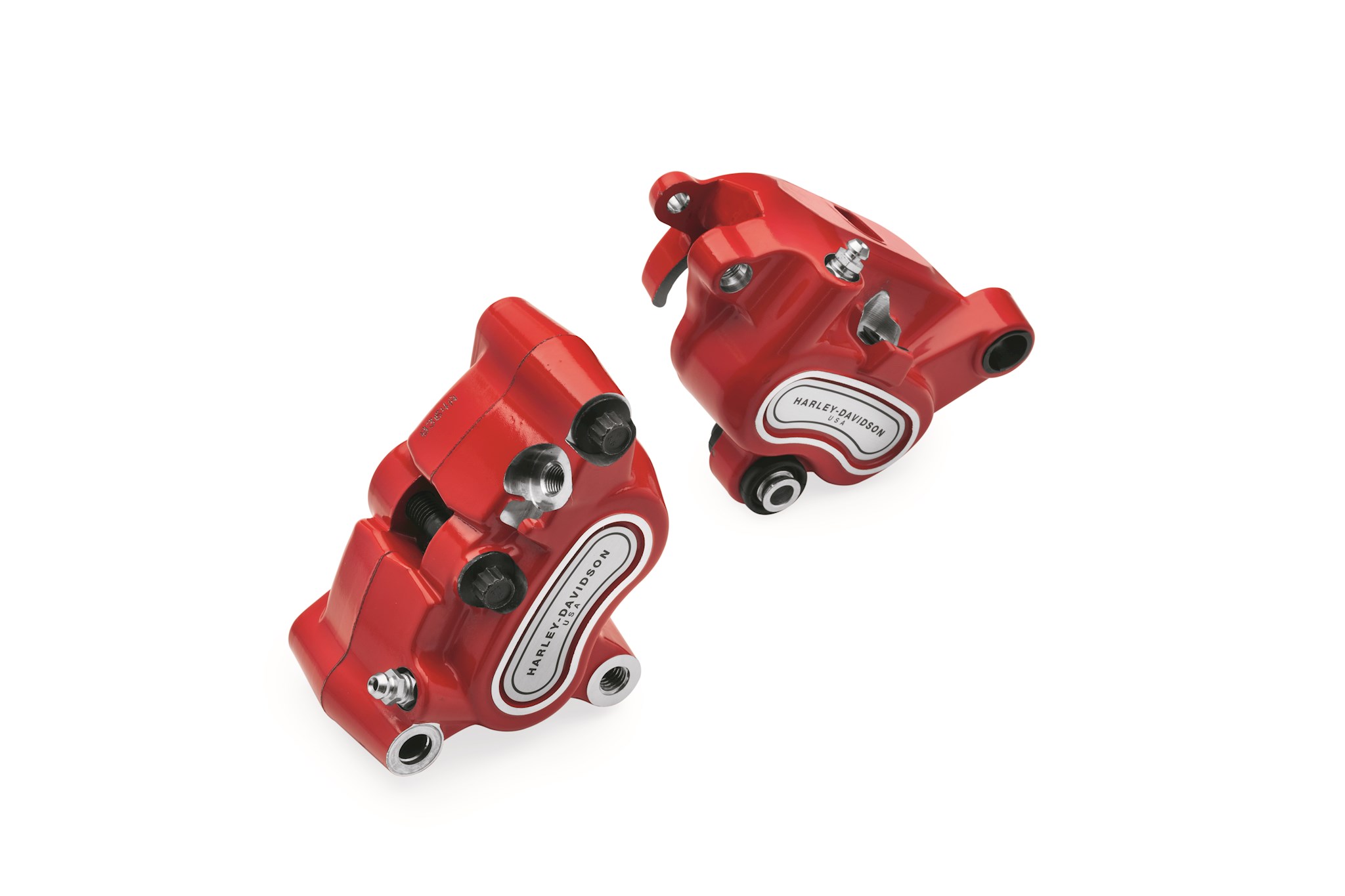 Dress your bike in the latest high-performance look. Brilliant red calipers make a powerful visual statement and set your bike apart from the ordinary. Manufactured from Original Equipment components for proven performance, these calipers will add a stylish touch to the stock bike or add the perfect finish to a complete custom equipped with chrome or blacked-out wheels, rotors and fork sliders.