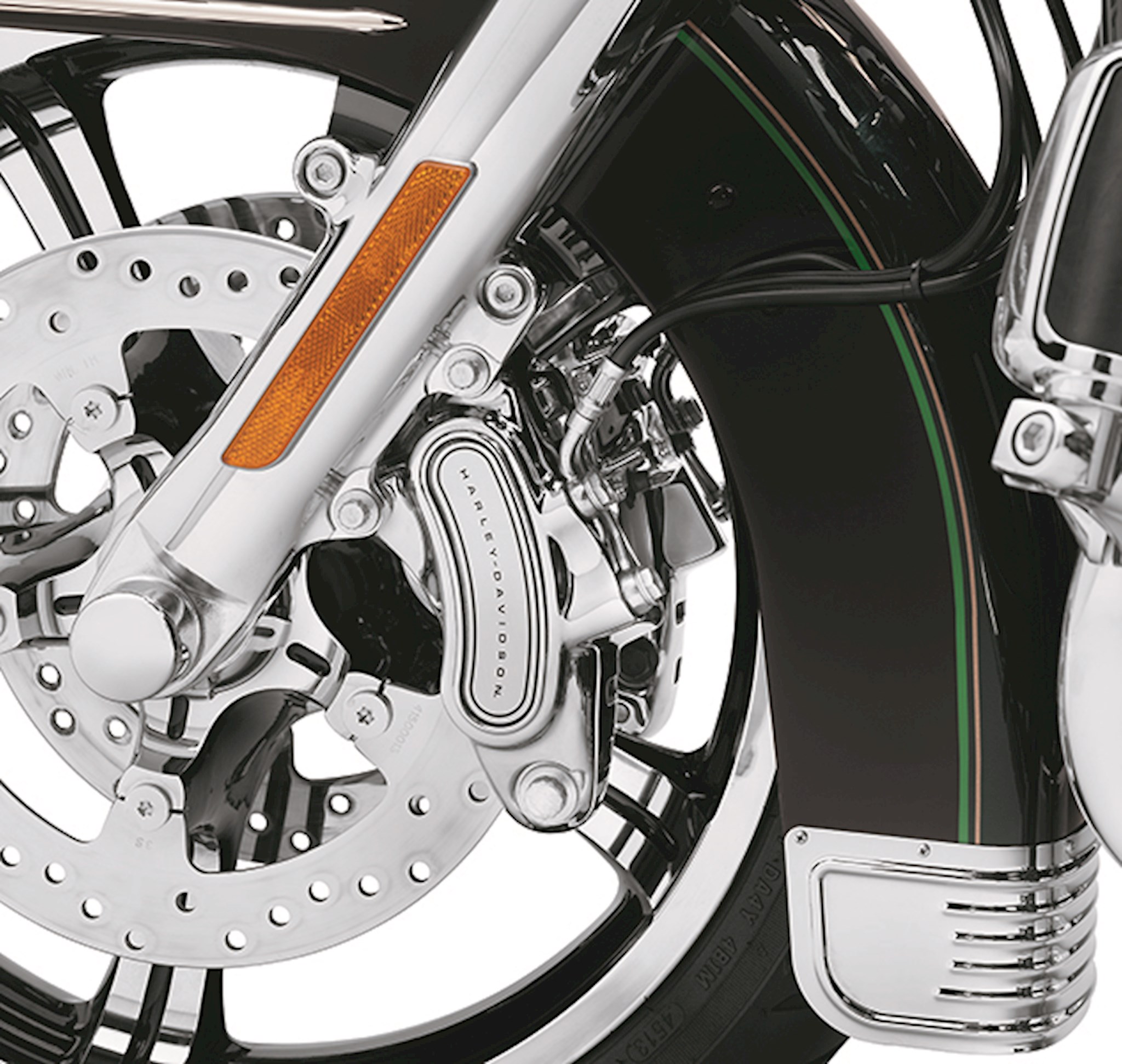 Add the shine of chrome to your bike with these highly polished Chrome Brake Caliper Kits. Manufactured from Original Equipment components for proven performance, these calipers are a great addition to the stock bike, or add the finishing touch to a complete custom equipped with chrome wheels, rotors, and fork sliders. (Brake pads not included.)