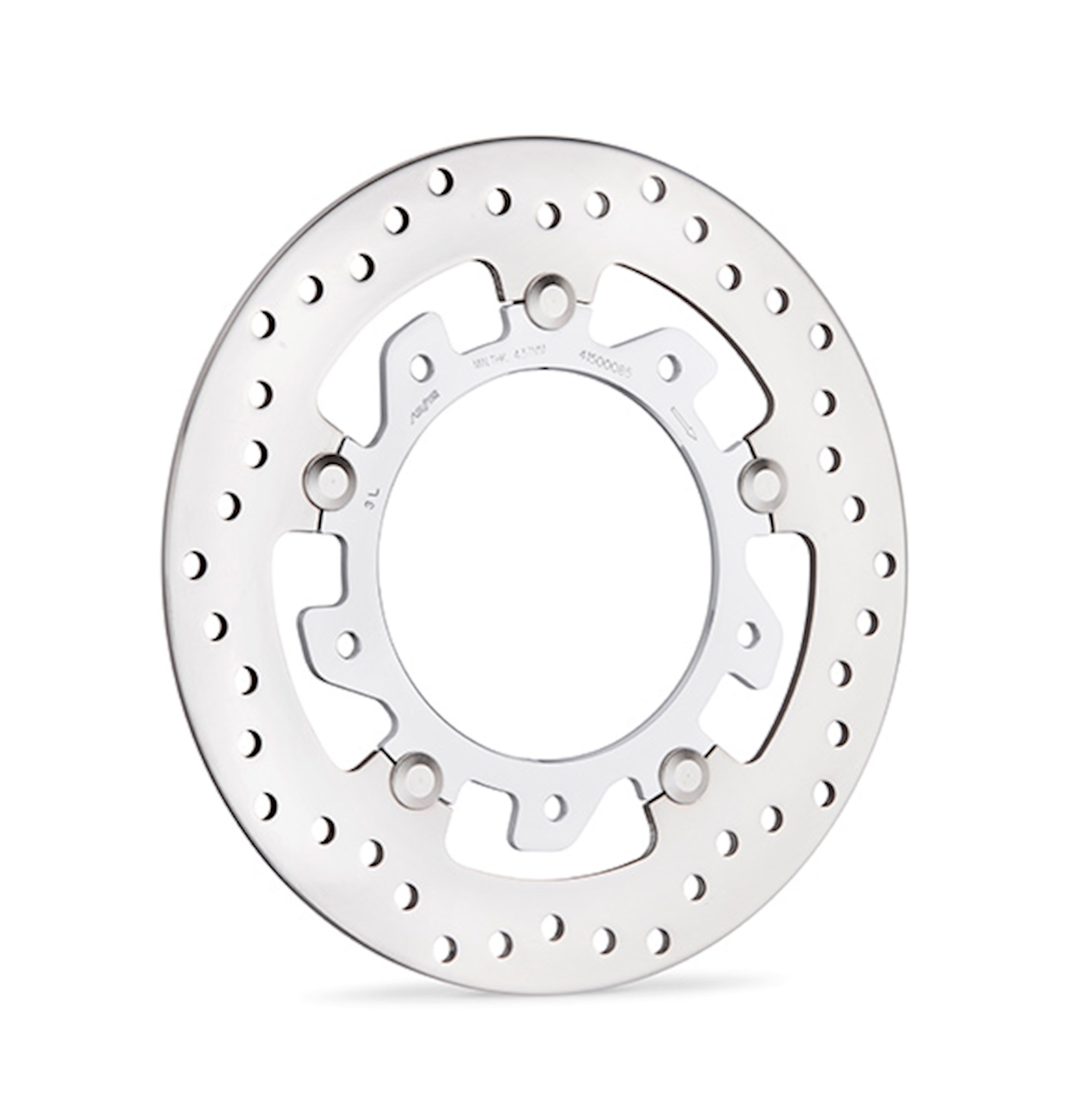 Complete the custom look with Aggressor Floating Rotors. Styled to complement the Aggressor front wheel, the inner spider features a cutout design that mirrors the wheel's distinctive spoke pattern. Rotors are polished to match your customizing direction. Rotors include chrome mounting hardware. Fits '14-later Touring models equipped with Aggressor Custom Front Wheel.