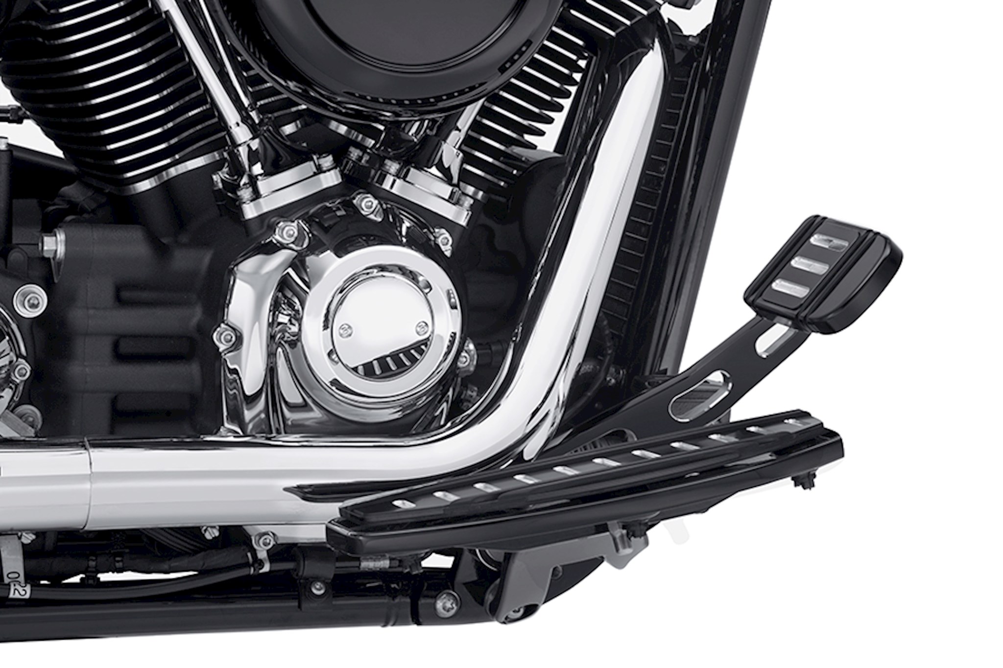 These Billet Style Rear Brake Levers are forged from billet aluminum, then machined and polished for a beautiful, custom look. Available in your choice of mirror chrome, satin black powder coat or edge cut black anodized and machined aluminum finishes. Lever matches the length of the Original Equipment lever found on FL Softail motorcycles. Brake pedal pads sold separately. Fits '18-later FL Softail models equipped with footboards.