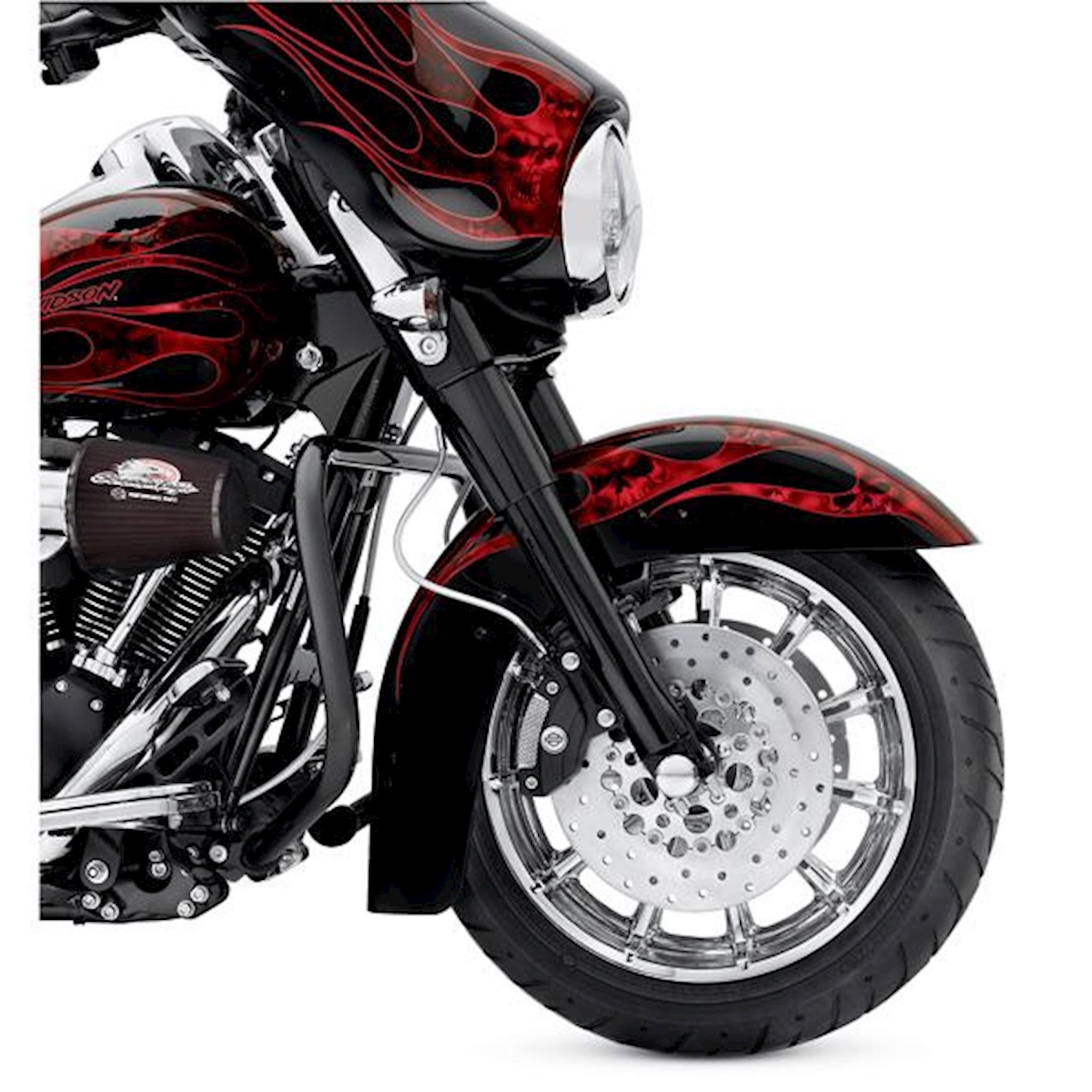 When you take this wheel for a spin, you're always a winner. Stunning cast aluminum wheel features 11 slim spokes that blend with the rim for eye-catching style. The unique spoke shape stands proud on the rim's edge, mimicking the pockets on a roulette wheel. The surface catches and reflects light, just as the raised ridges deflect the spinning roulette ball. Available in your choice of finish, these wheels will add a sinister look to your custom ride. Requires separate purchase of model-specific Wheel Installation Kit, Sprocket hardware and Brake Rotor-specific hardware. See I-sheet for details. Installation may require separate purchase of wheel size and model-specific tire. Fits '09-later Touring models (except '12-later CVO™). Does not fit Trike models.
