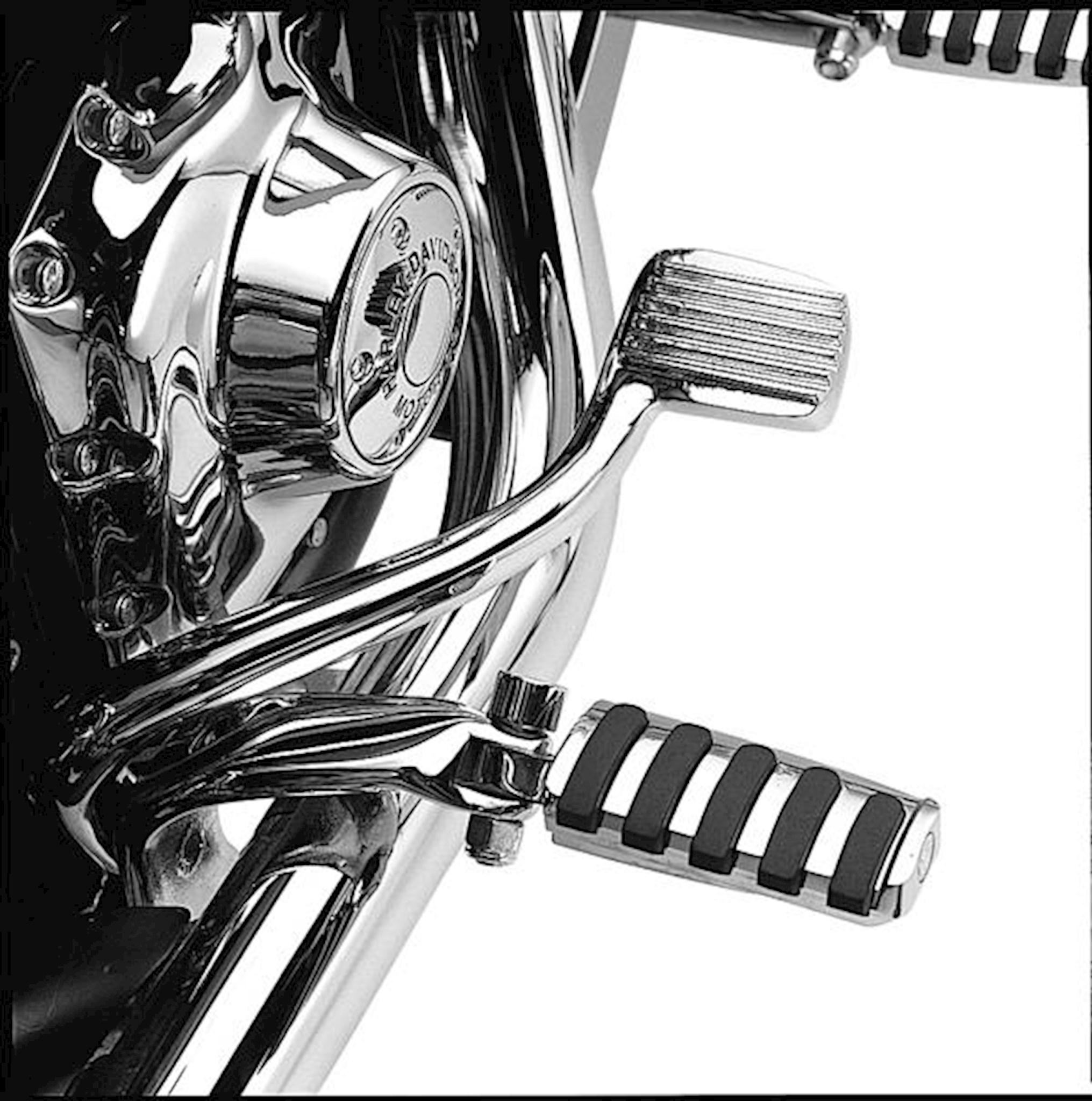 We start with a stock brake lever, then we add custom styling with highly polished chrome-plating, resulting in a great combination of form and function. Kit includes bushing, pin and linkages for easy installation.