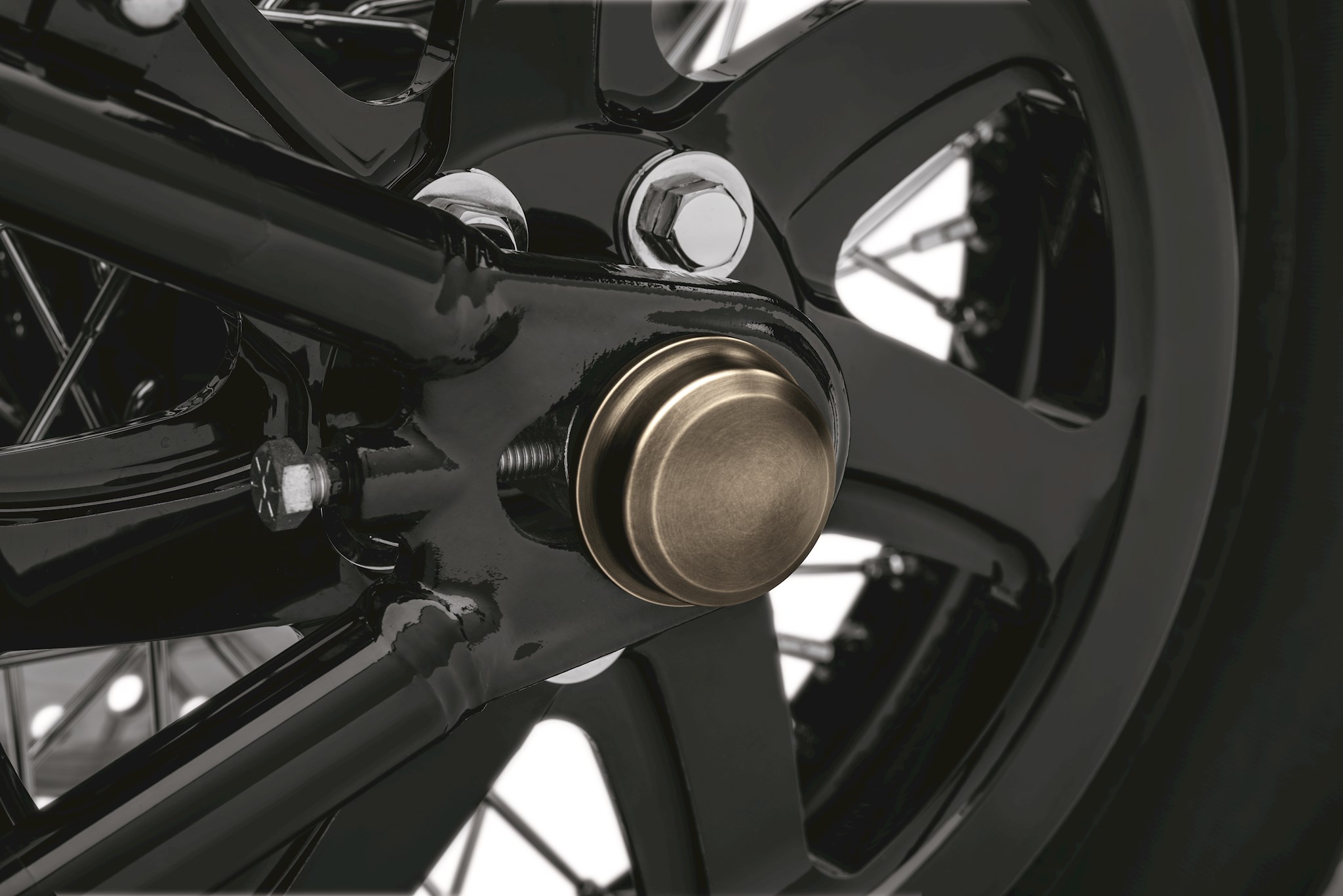 Cover your rear axle nut in the most traditional way. Artistically manufactured from solid brass, these components feature a natural antique finish that will age and patina when exposed to the elements. Brass Collection Rear Axle Nut Covers complement the matching Front Axle Nut covers. Easy to install kits include all necessary mounting hardware. Sold in pairs.