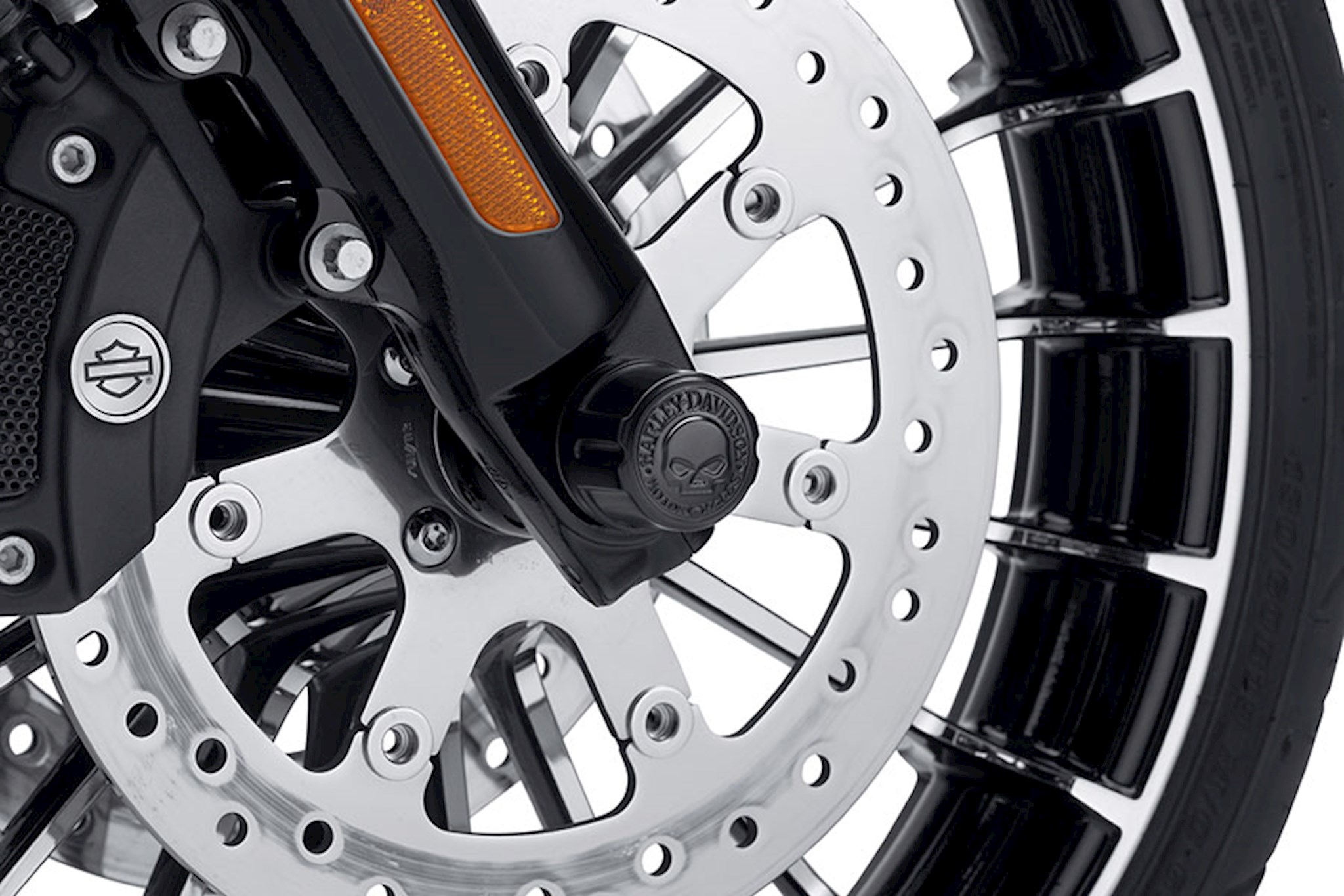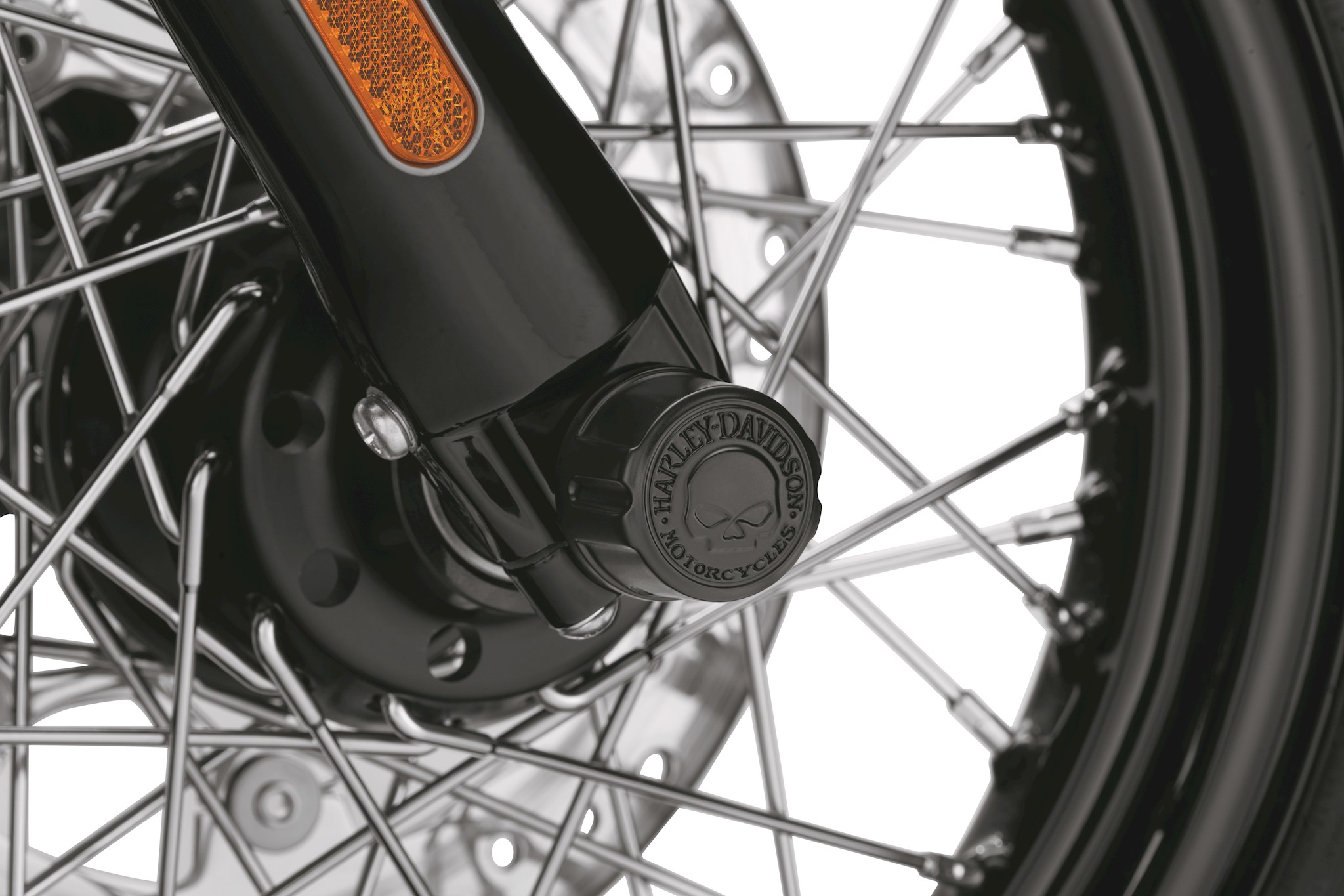 Penned at the hand of Willie G, the famous Skull Collection makes a shift to the dark side. Completely drenched in matte black, the raised skull and surrounding Harley-Davidson Motorcycle script adds a subtle ominous touch to your ride. The matte finish easily coexists alongside gloss black or wrinkle black surfaces. The complete collection of components includes matching black hardware.