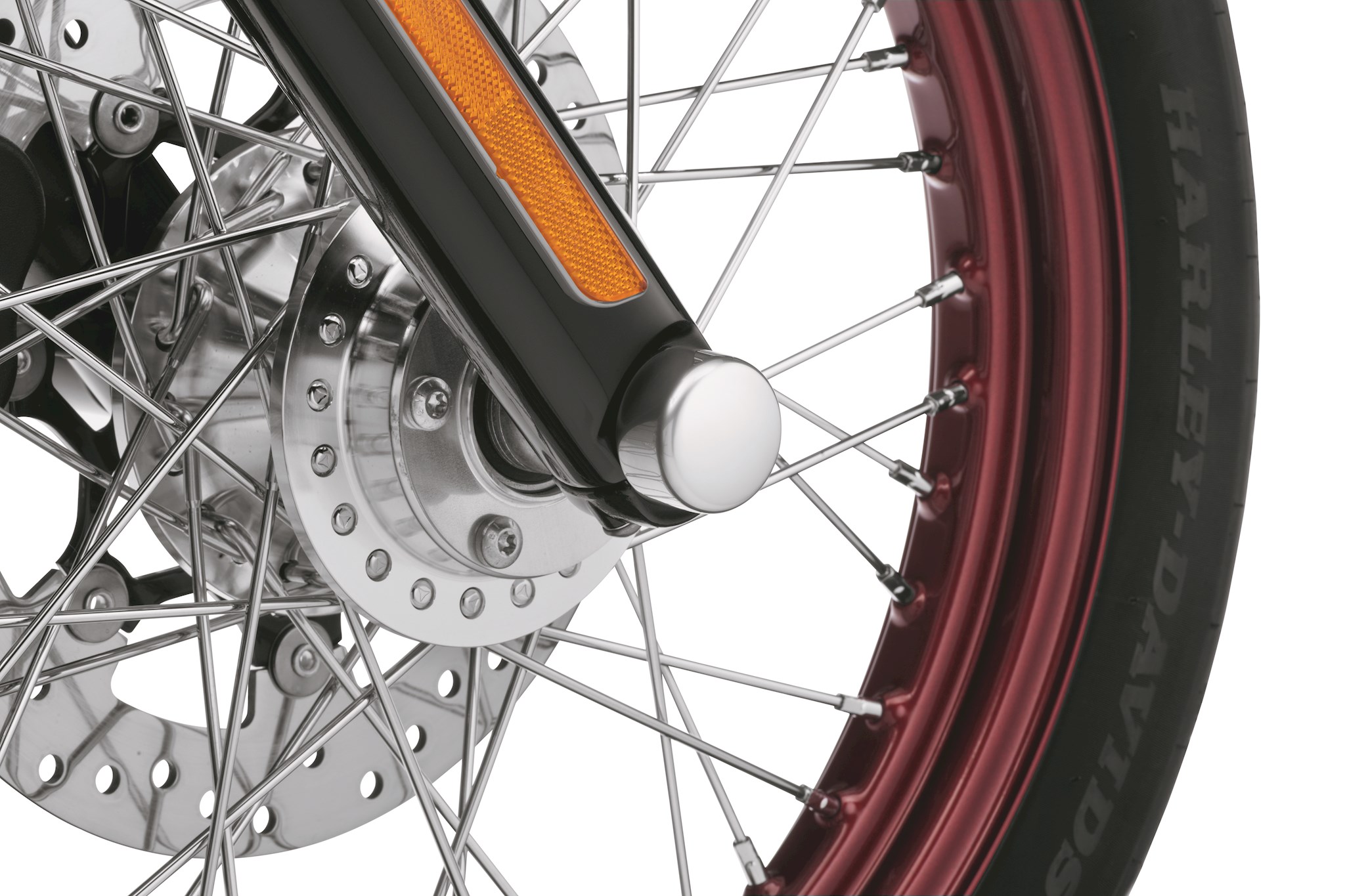 Cover the front axle in style. The rich satin chrome finish of these Front Axle Covers is the perfect match for the satin-finished components on the '18 Fat Boy® model, and a great complement to Original Equipment polished or blacked-out fork sliders as well. Easy to install kits include all necessary mounting hardware. Sold in pairs.