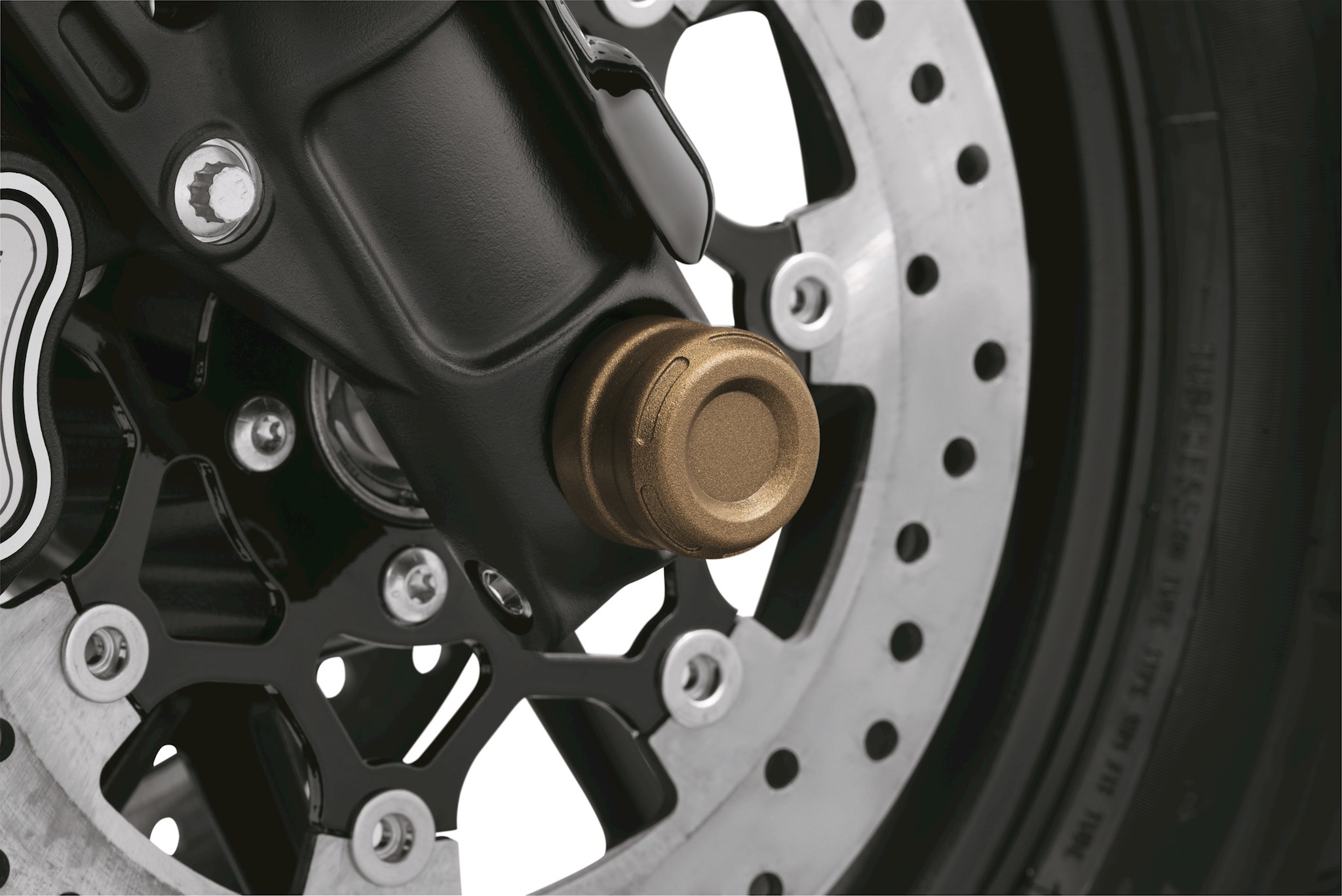Express your bold, renegade attitude. The machined aluminum Dominion Collection Front Axle Nut Covers add style to the front of the bike and are the perfect complement to other Dominion Collection accessories.