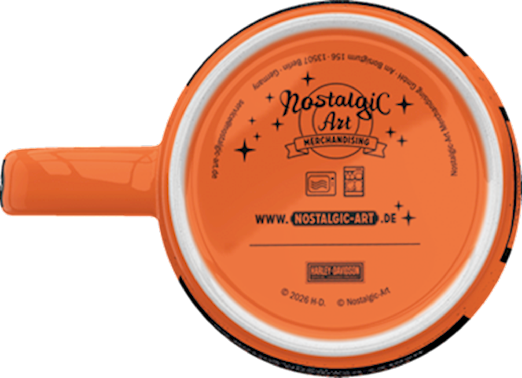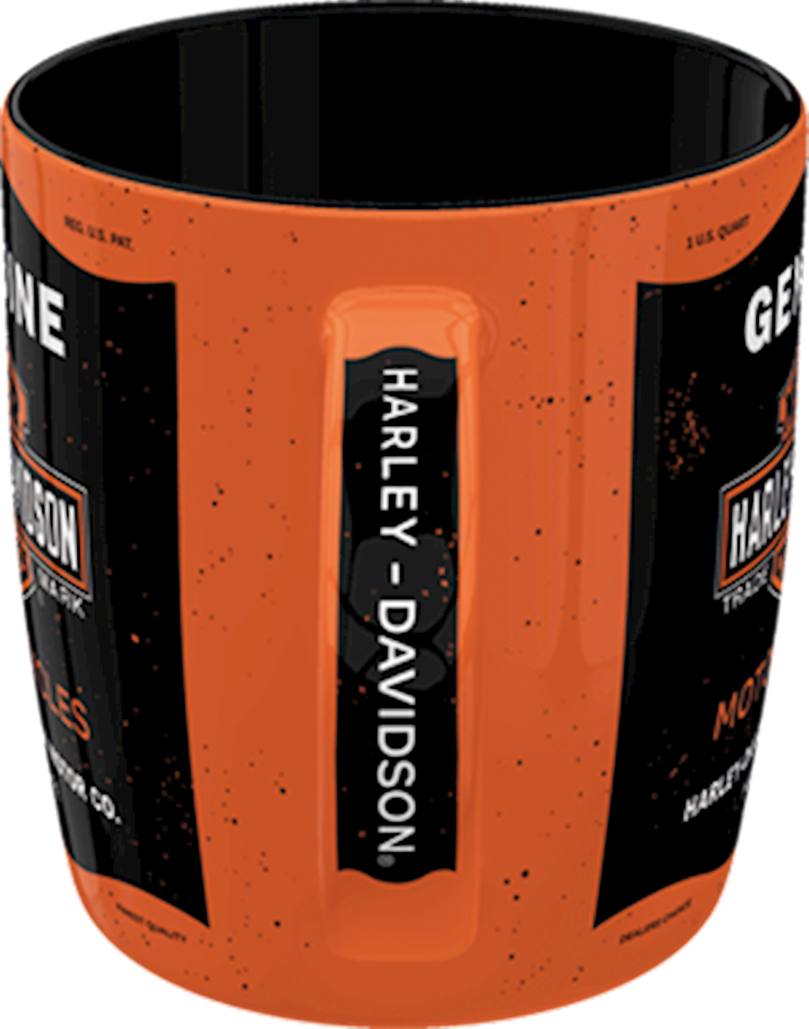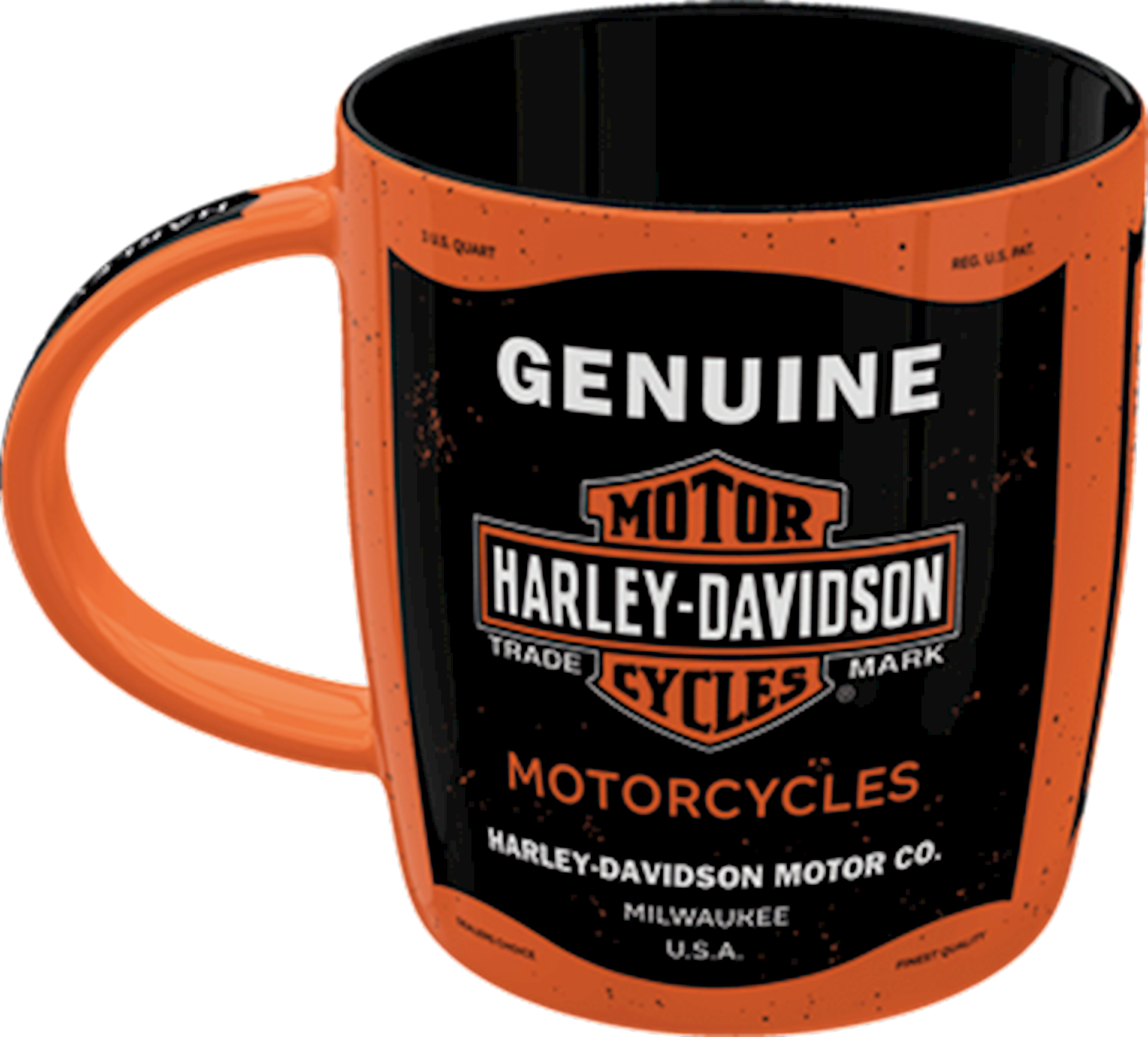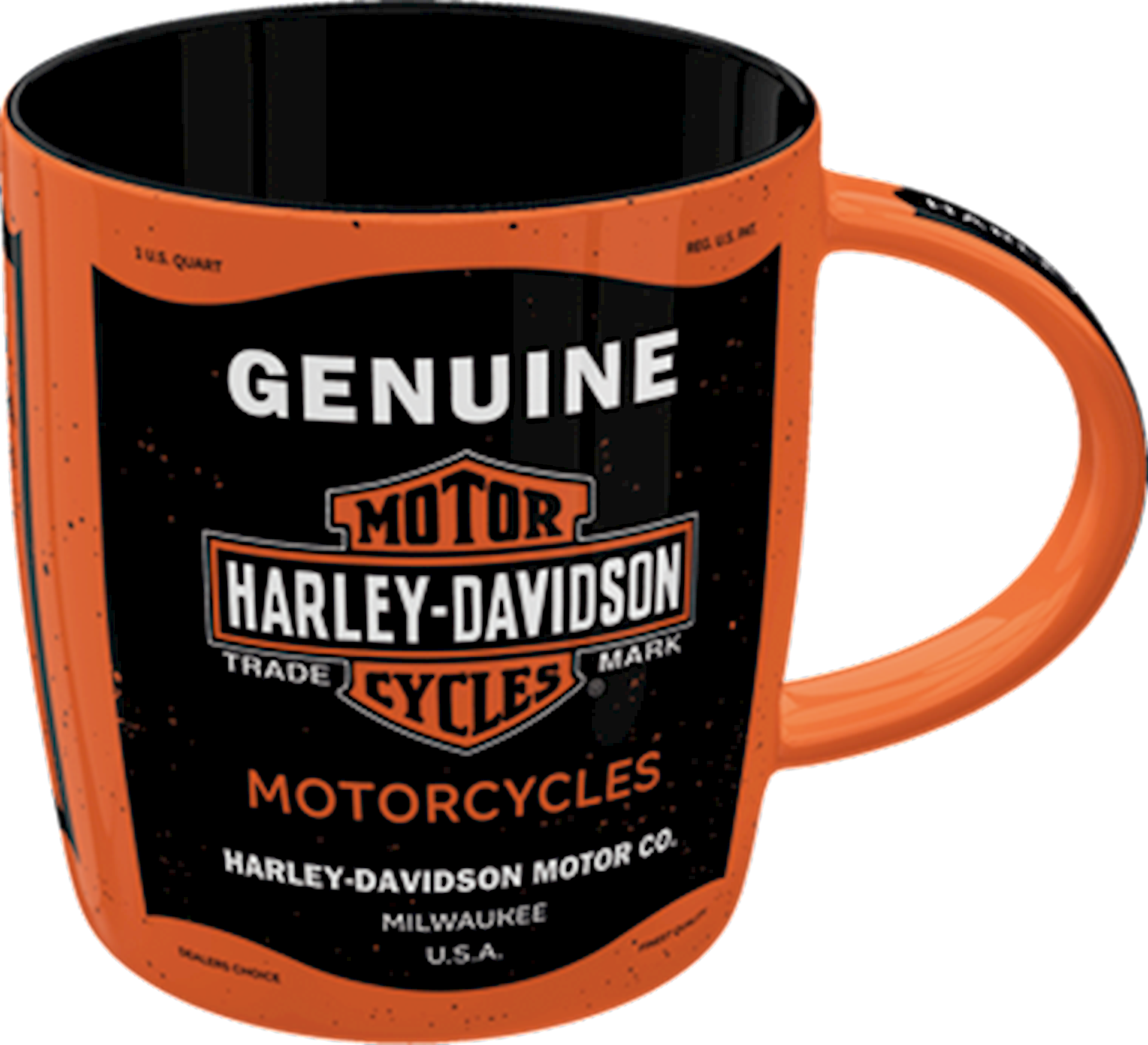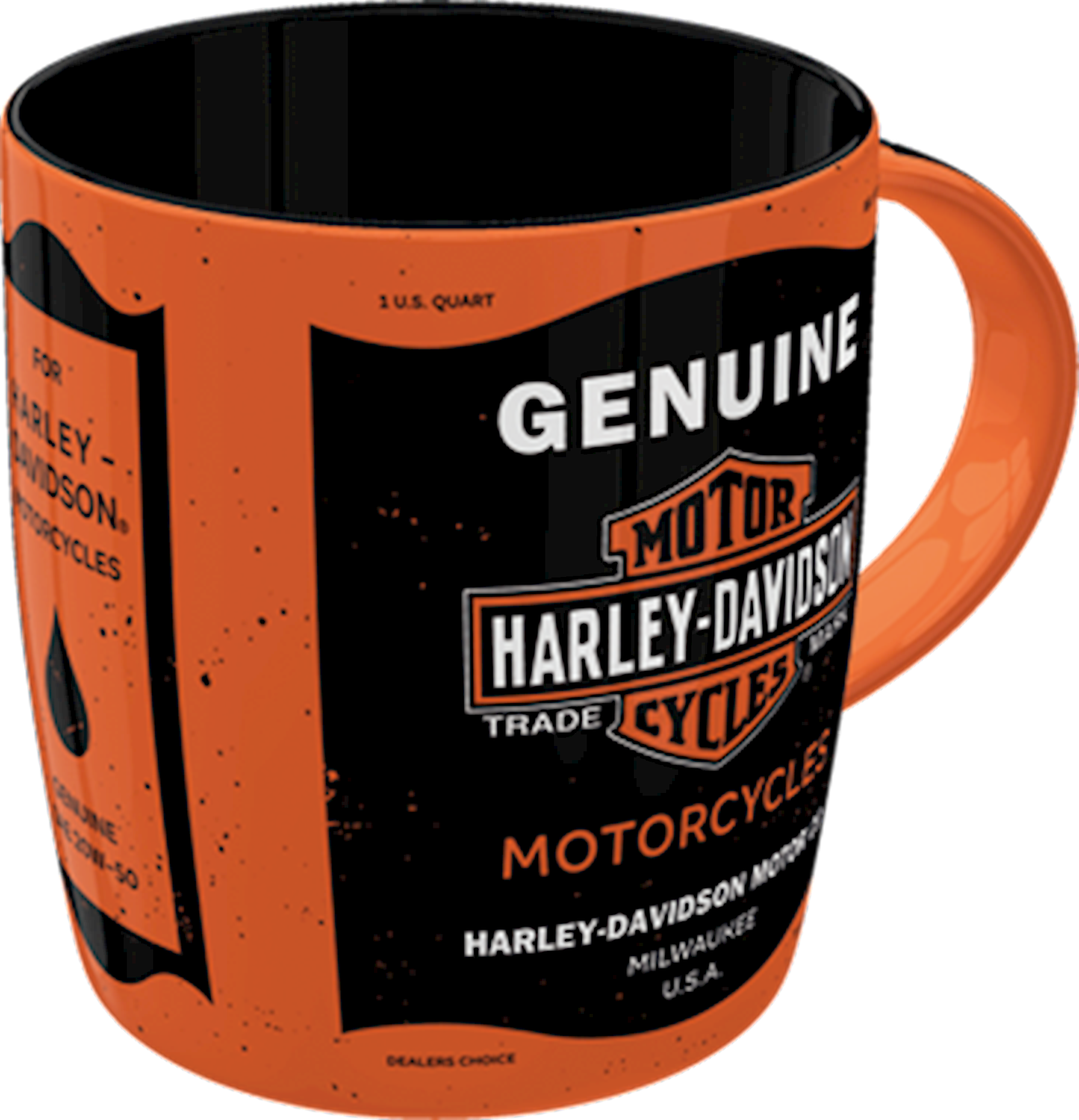 Harley-Davidson Motor Oil mug. Sturdy ceramic mug. All-over-print design. Labelled with hang tag. 8,5 x 9 cm. Size: 340 ml.