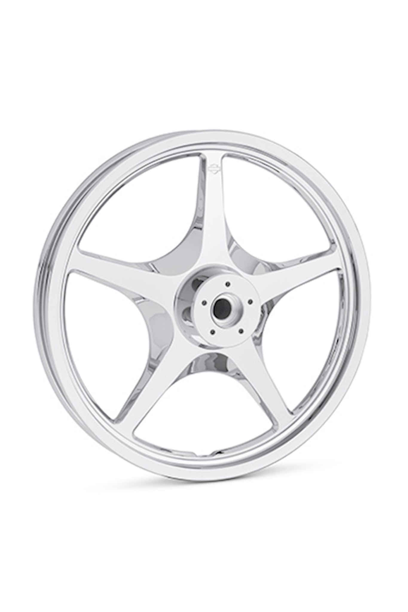 Impressive styling and performance all rolled into one, this premium quality cast aluminum wheel is named for its striking 5-spoke design. Available in mirror chrome finish, this wheel offers a captivating style. Requires separate purchase of model-specific Wheel Installation Kit, Sprocket hardware and Brake Rotor-specific hardware. See I-sheet for details. Installation may require separate purchase of wheel size and model-specific tire. Fits '00-later FXS, FXST, FXSTD (except FXSTDSE), FXSTS, FXSTB, FXSTC and '00-later FXDWG.