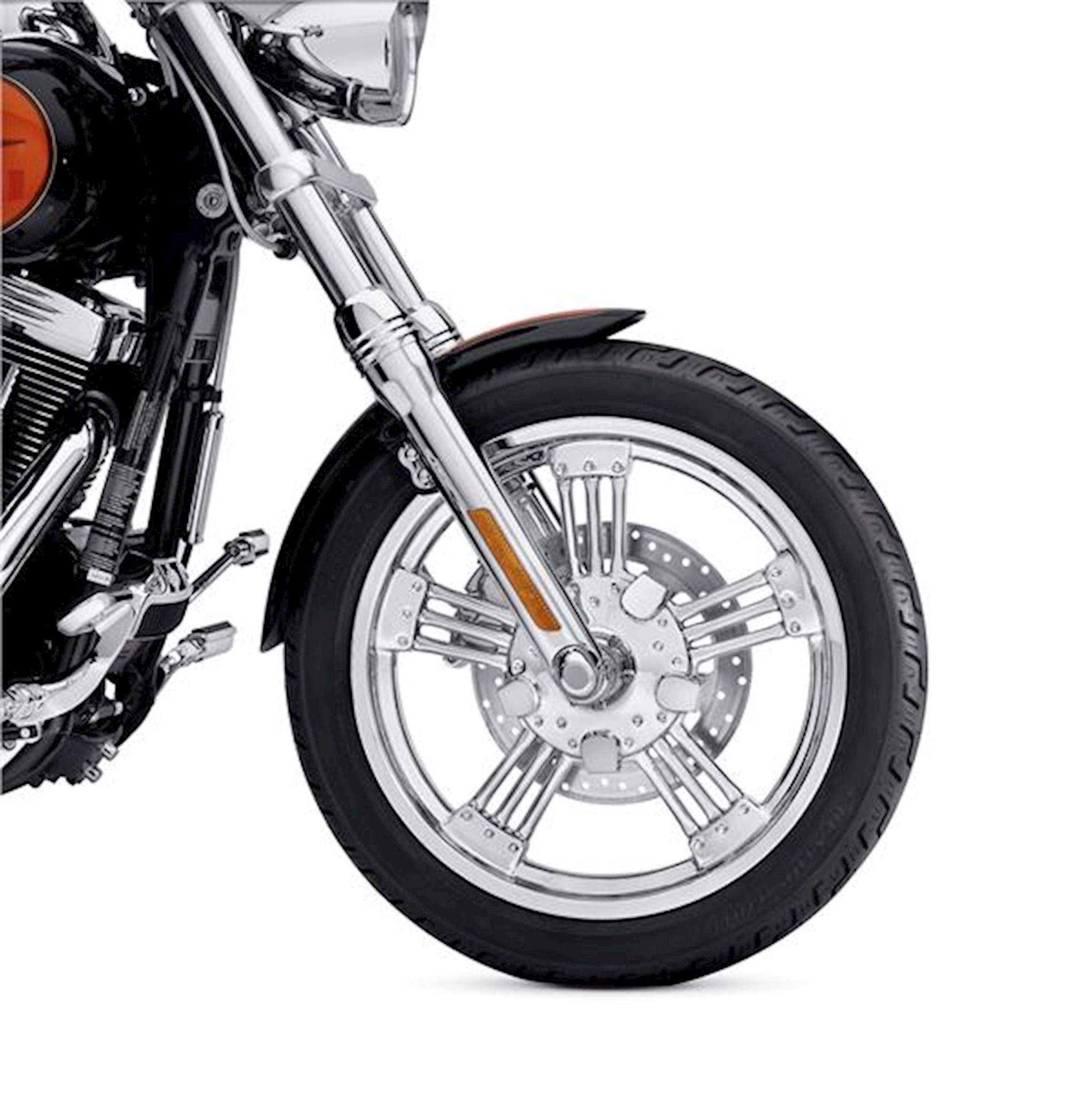 The beauty of chrome with the durability of machined brass, featuring a laser-etched Bar & Shield logo painted black. Available with a traditional, unique fluted or rugged acorn shaped cylinder. Will not seize on valve stems and includes O-rings for reliable seal. Sold in pairs. Fits '00-later FXS, FXST, FXSTD (except FXSTDSE), FXSTB, FXSTC, '00-later FXDWG and '08 FXDSE2 models. Fits '06-later Dyna® models (except FLD, FXDWG, FXDF and FXDFSE/2). Installation on models equipped with Original Equipment laced wheel will require separate purchase of Floating Brake Rotor. Does not fit with chrome Front Wheel Spacer Kit P/N 41420-08.