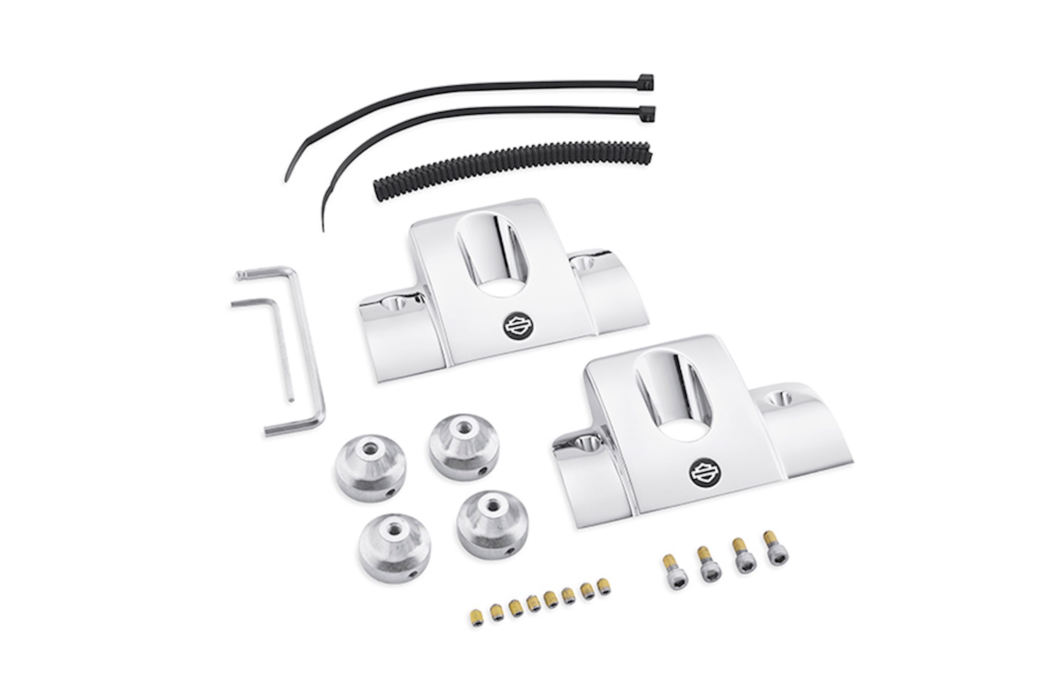 This exclusive Headbolt Bridge covers both the headbolts and spark plug with a splash of chrome and an engraved Bar & Shield emblem. Easy to install with unique headbolt mounts. Kit includes all necessary mounting hardware. Sold in pairs.