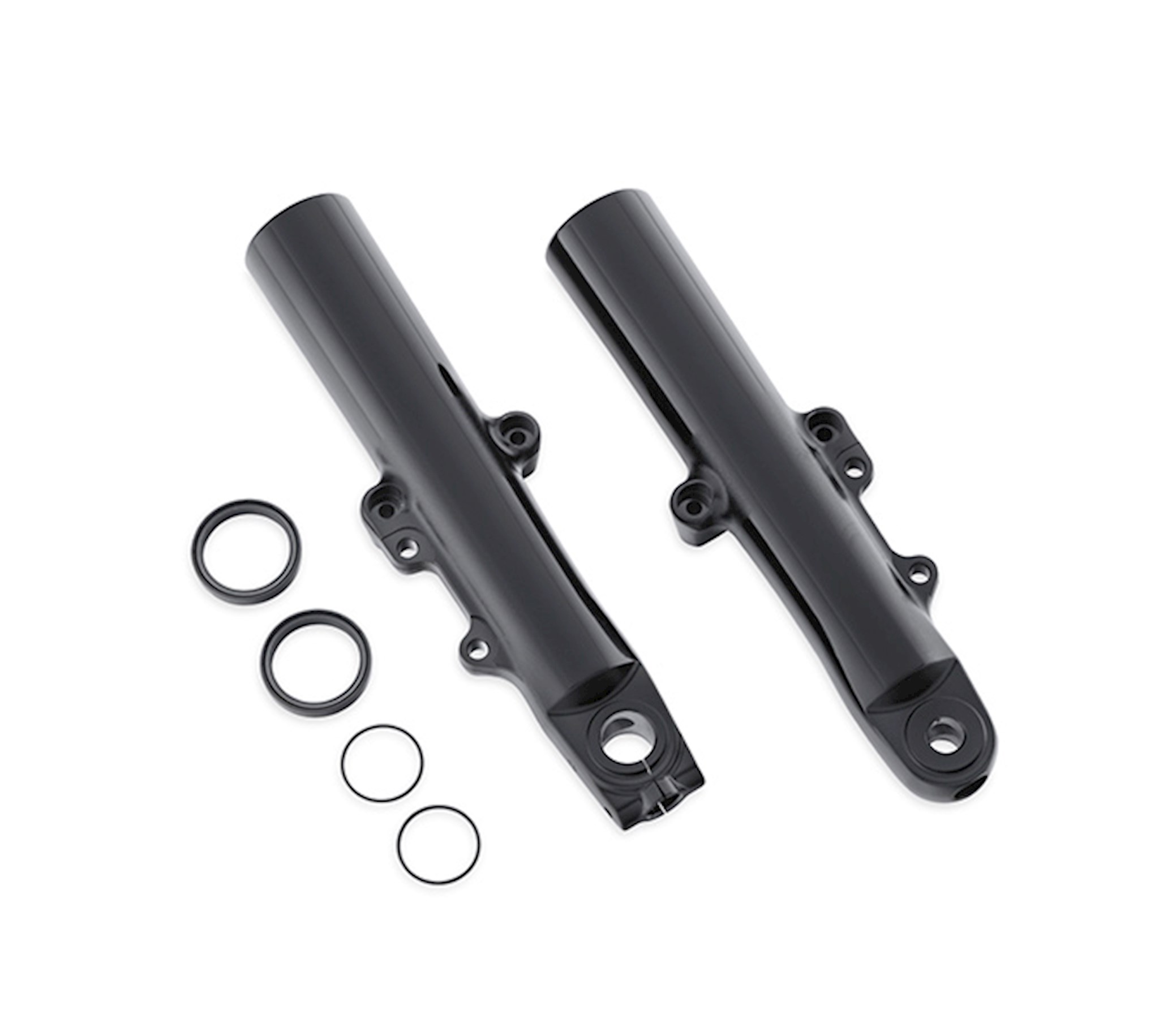 These gloss black coated sliders are the ultimate extension of your bike's "dark side" and make a perfect custom addition to your blacked-out ride. Manufactured to Original Equipment specifications, the durable black coating is a great match to other H-D® black components. A perfect addition during the installation of Premium Ride or Profile Low front suspension components, this includes right and left sliders.
